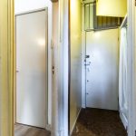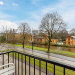 At the front, the house has wide windows and inward-turning doors to a small balcony with unobstructed views of the surrounding area. Here you can create a nice lounge area. In the living room there is a closet and access to the bedroom, which is also located at the front. On the floor of the living/dining room and bedroom is laminate.