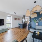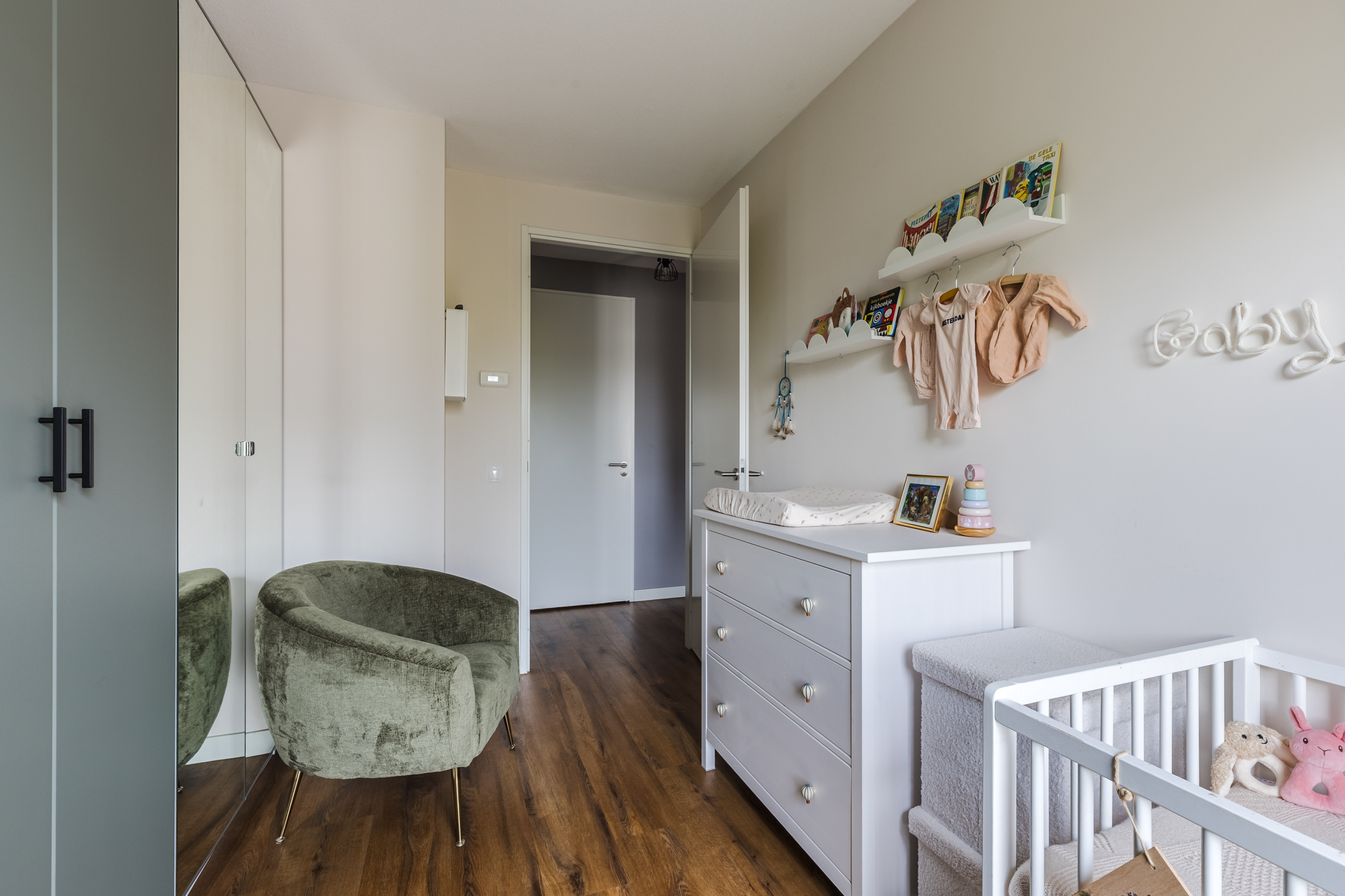 Upon entering the apartment, you are welcomed into a spacious and neatly finished hallway. From here, you have access to all rooms. The meter cupboard and mechanical ventilation unit are located near the entrance. In addition to the WC, bathroom, bedrooms, and access to the living room, there is a separate utility room with connections for a washer and dryer. This space is also practically organised for optimal use.