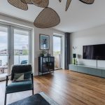 Throughout the entire apartment, you will find a high-quality glued PVC floor (Therdex, installed in 2020). The walls were plastered upon delivery. Thanks to the large windows (tilt-and-turn), the apartment is wonderfully light and spacious. French doors provide access to the large balcony. On the balcony, you have ample space to create a lounge area and place an outdoor table—a perfect spot to relax or enjoy meals al fresco.