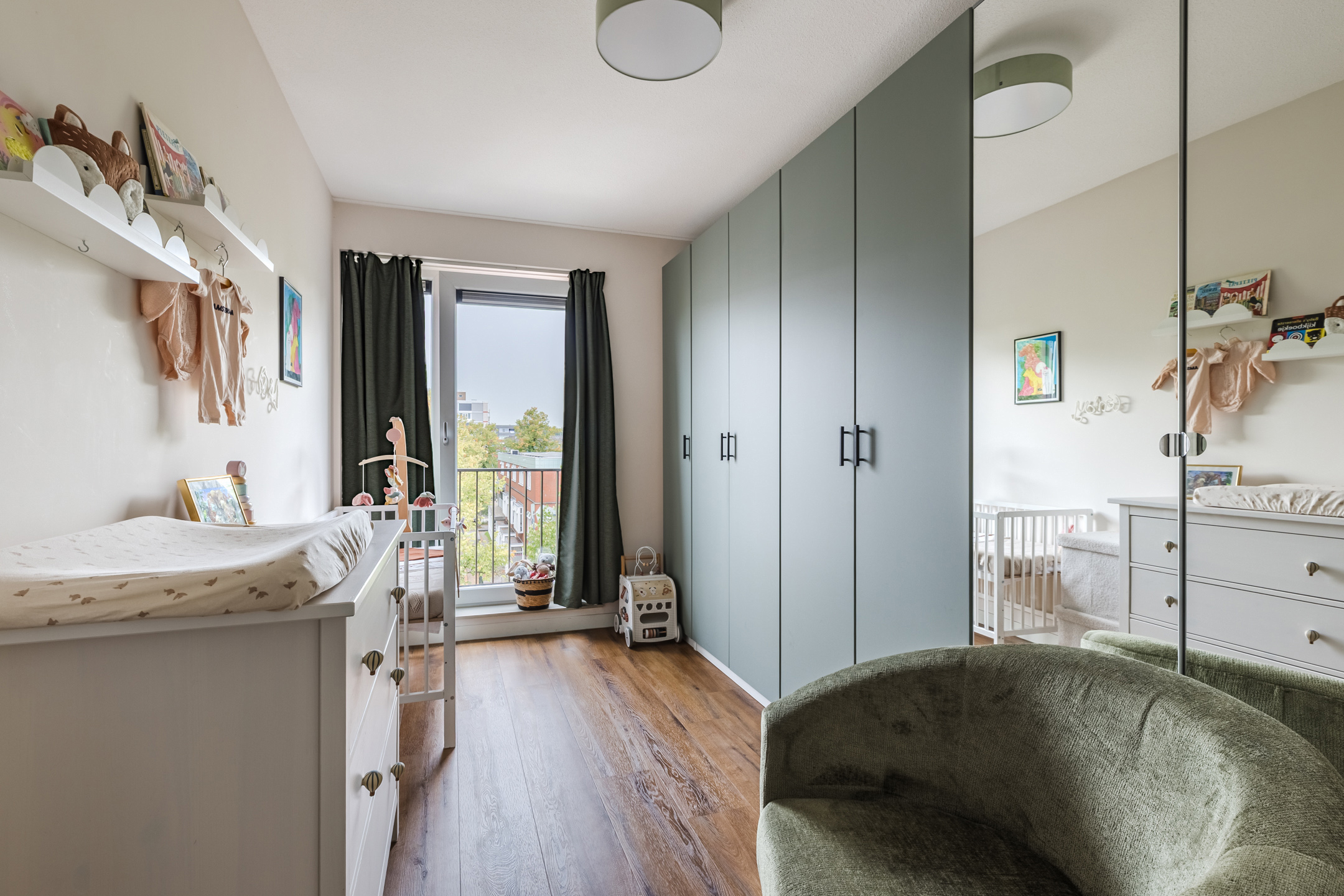 Het appartement beschikt over drie slaapkamers. Deze kamers zijn ruim opgezet en keurig afgewerkt. Alle slaapkamers genieten van veel natuurlijk licht. De badkamer is netjes afgewerkt met grijze vloertegels en witte wandtegels. In deze ruimte tref je een badmeubel met wastafel, ligbad en inloopdouche aan. Het appartement is voorzien van een aparte toiletruimte met zwevend toilet en fonteintje.
