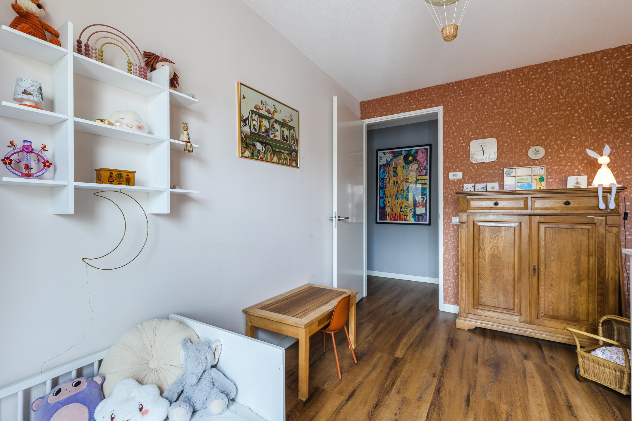 Shared entrance with an intercom system, mailboxes, and a lift. On the ground floor, you will find the spacious storage room, equipped with practical shelving and space for multiple bicycles. From the back door, you have direct access to your car. The apartment's parking space is conveniently located near the entrance and is covered. This means you never have to scrape ice in the winter, and you can drive straight out through the security gate. There is also space behind the car for a cargo bike.