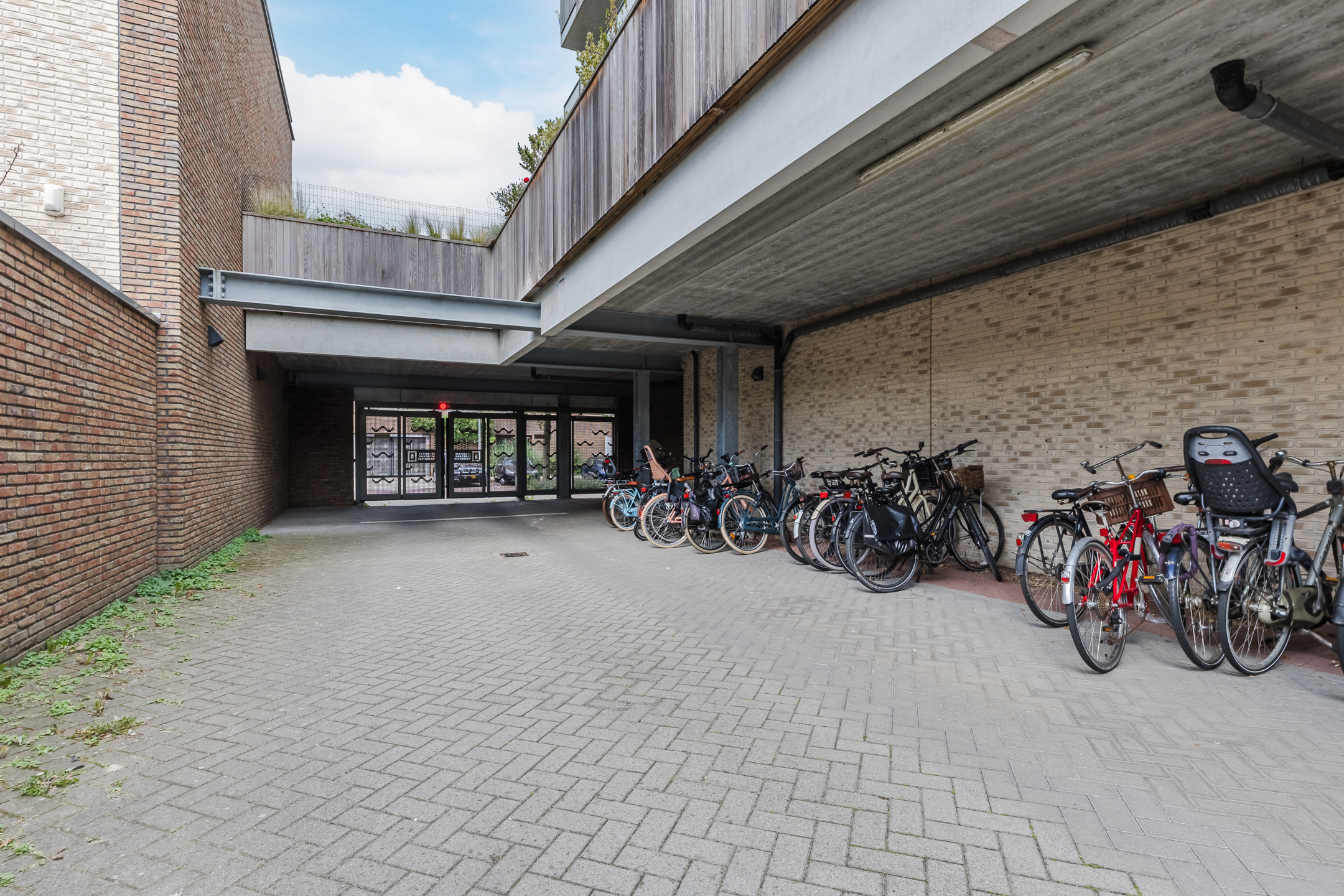 Gezamenlijke entree met bellentableau, brievenbussen en de lift. Op de begane grond bevindt zich de ruime berging, voorzien van praktische stellingkasten en ruimte voor meerdere fietsen. Ook loop je hier vanuit de achterdeur zo naar je auto. De parkeerplaats die bij het appartement hoort is praktisch gelegen nabij de ingang en overdekt. Hierdoor hoef je in de winter nooit te krabben en rij je zo de speedgate uit. Er is ruimte om achter de auto nog een bakfiets te plaatsen.