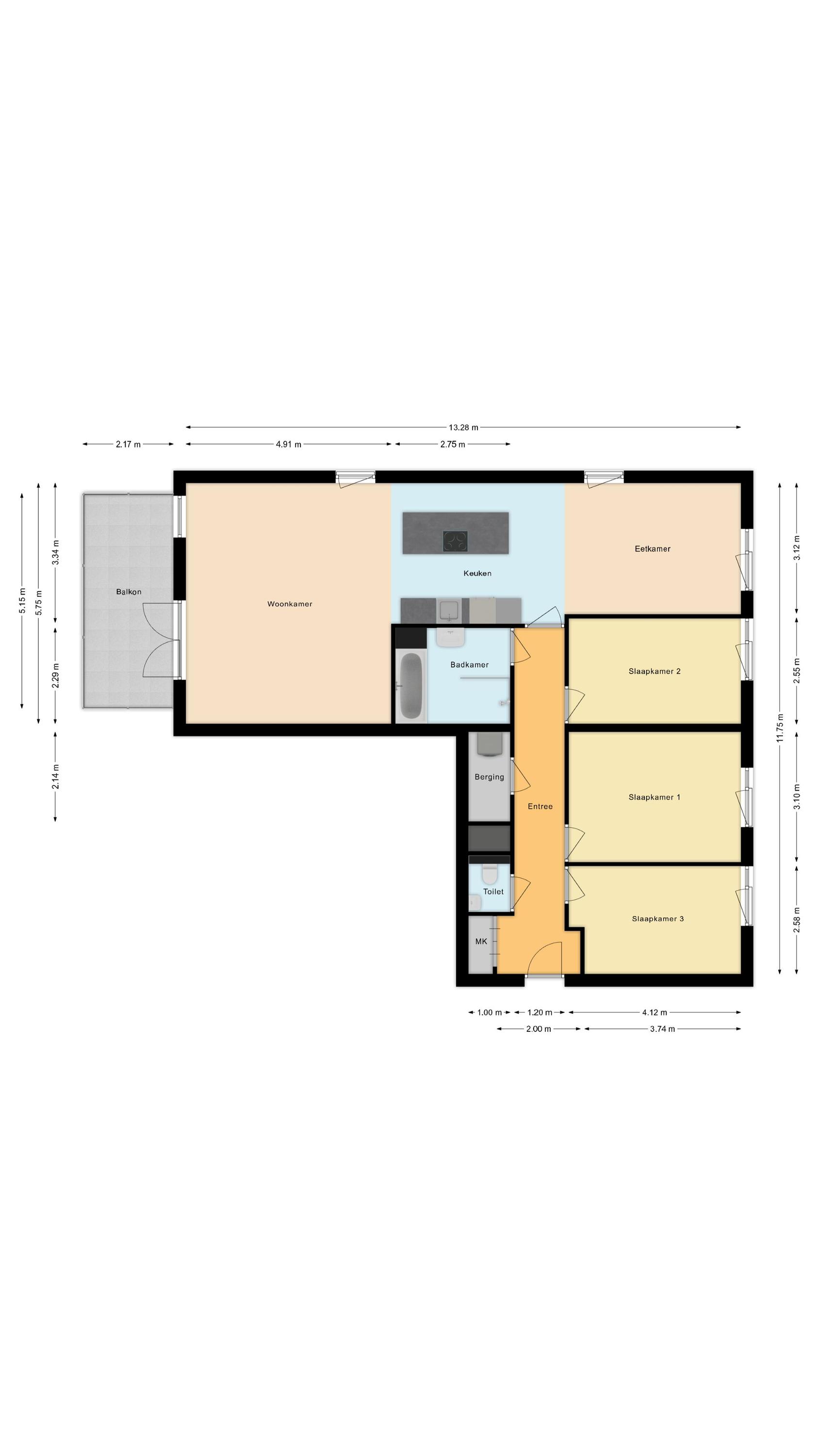 Dit appartement heeft drie slaapkamers, een sfeervolle woonkamer, prachtige open keuken, uitstekend sanitair en een groot en gezellig balkon, gelegen op het zuiden, waar je heel vrij en privé zit.