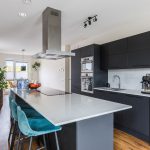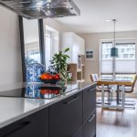 • Moderne open keuken met kookeiland en luxe inbouwapparatuur en graniet aanrechtblad