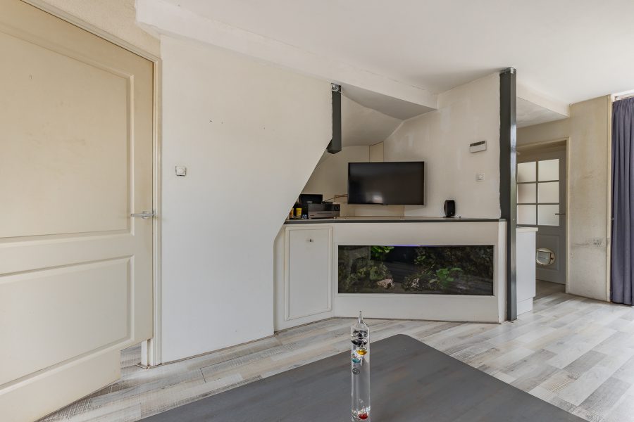 This 1950-built end house (67.6 m2) with 2 bedrooms offers plenty of potential and the large shed (with storey) in the back garden is a dream for the handyman who wants to have a workplace at home.