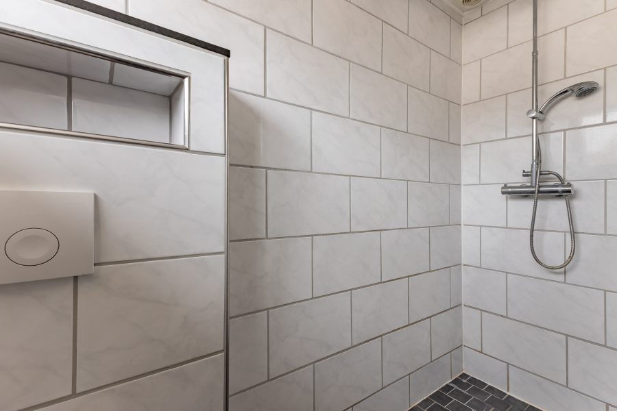 Via de trap in de hal, bereiken we de overloop van de eerste verdieping. Op deze verdieping vinden we 2 slaapkamers en de badkamer. Beide slaapkamers zijn afgewerkt met een laminaatvloer en de grootste slaapkamer beschikt over een inbouwwandkast. De badkamer is voorzien van inbouwspots, een tweede toilet, een wastafel met meubel en een inloopdouche.