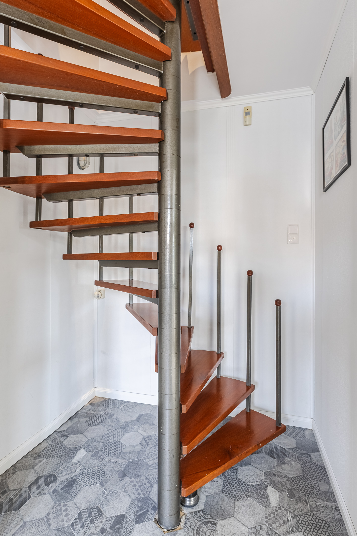 The staircase on the first floor leads to the spacious landing on this floor. The boiler is located here. From the landing, there is access to a luxurious sauna, several storage rooms and the fourth bedroom.