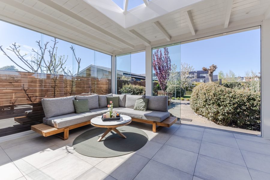 • Prachtige serre met glazen schuifwanden en lichtstraat