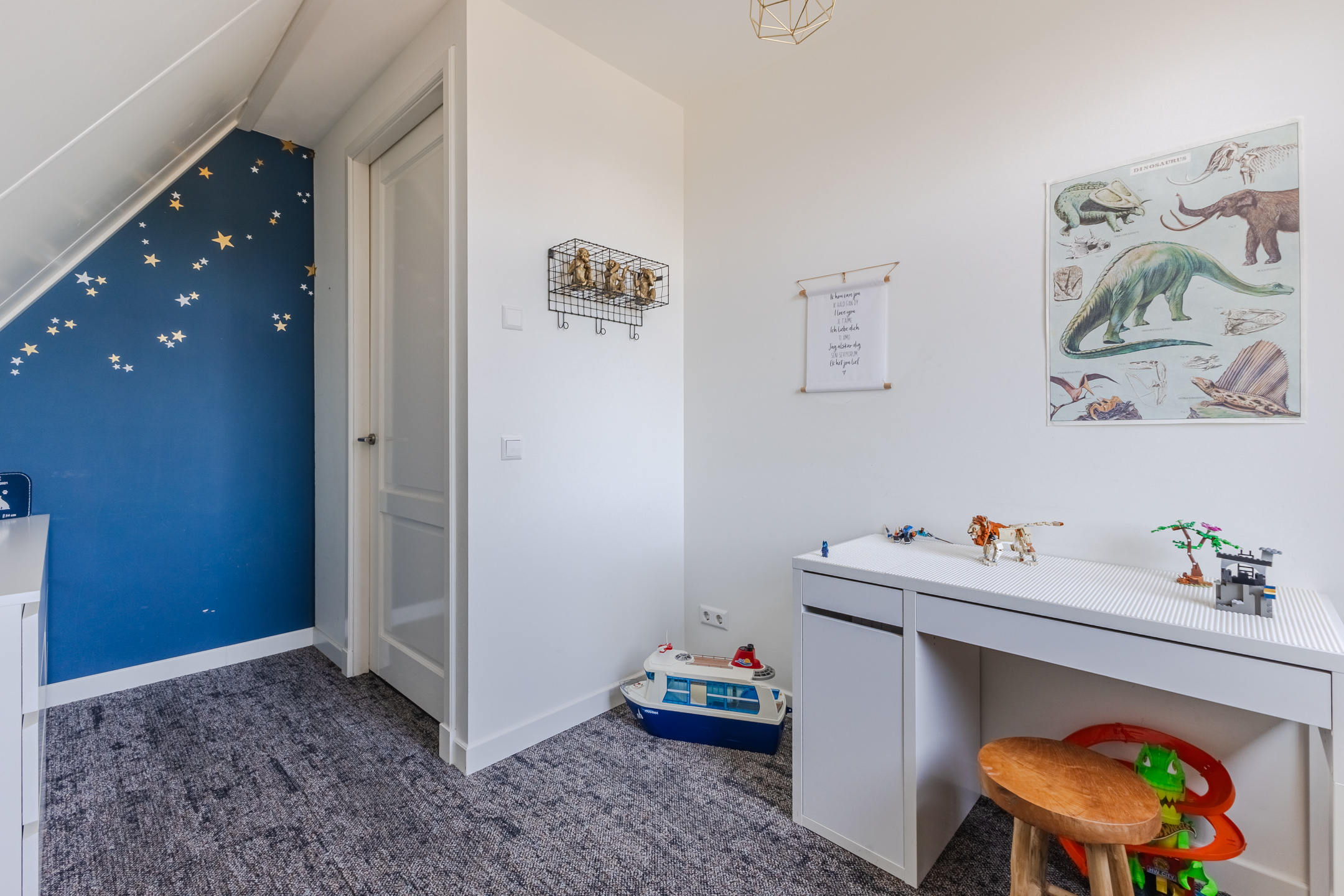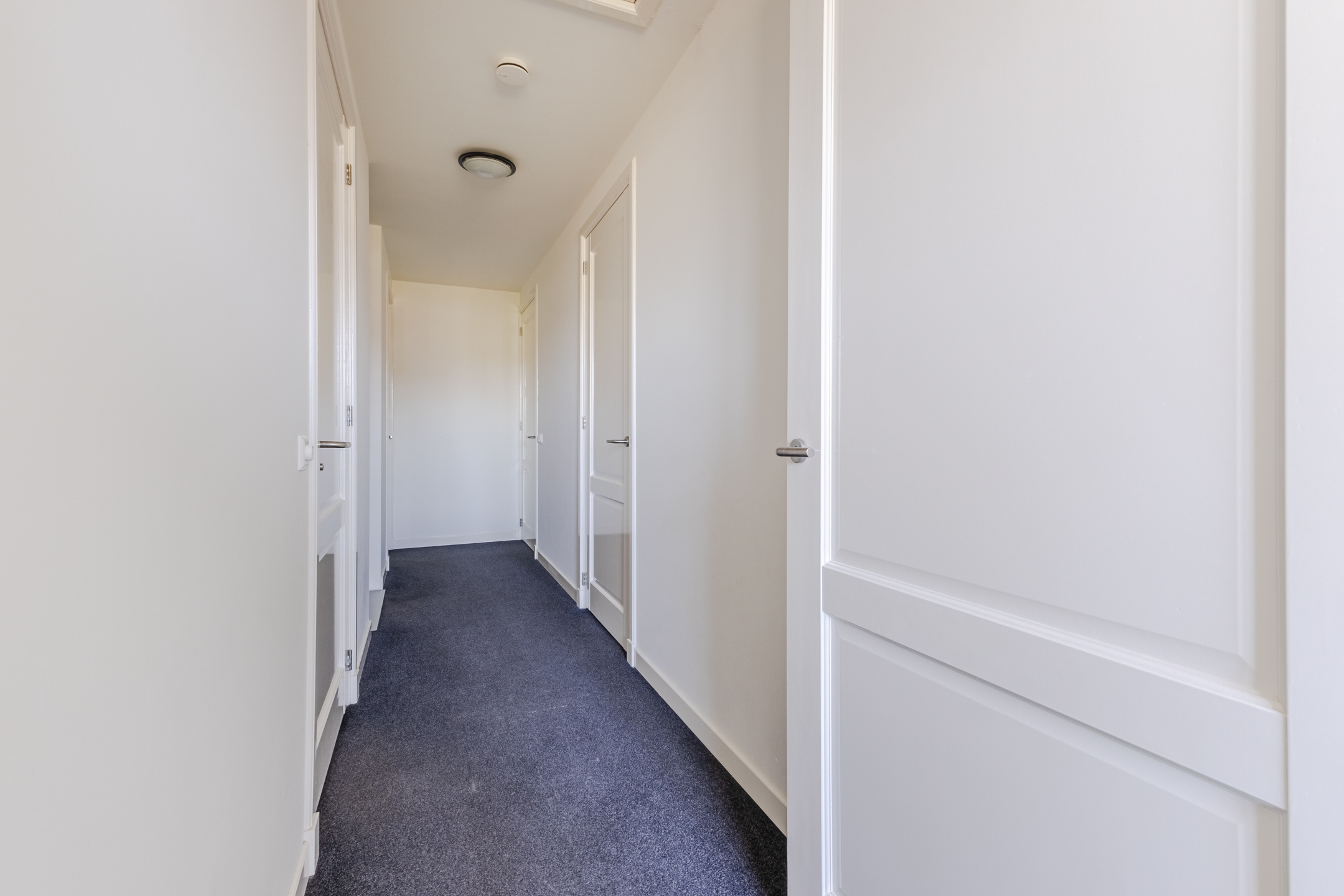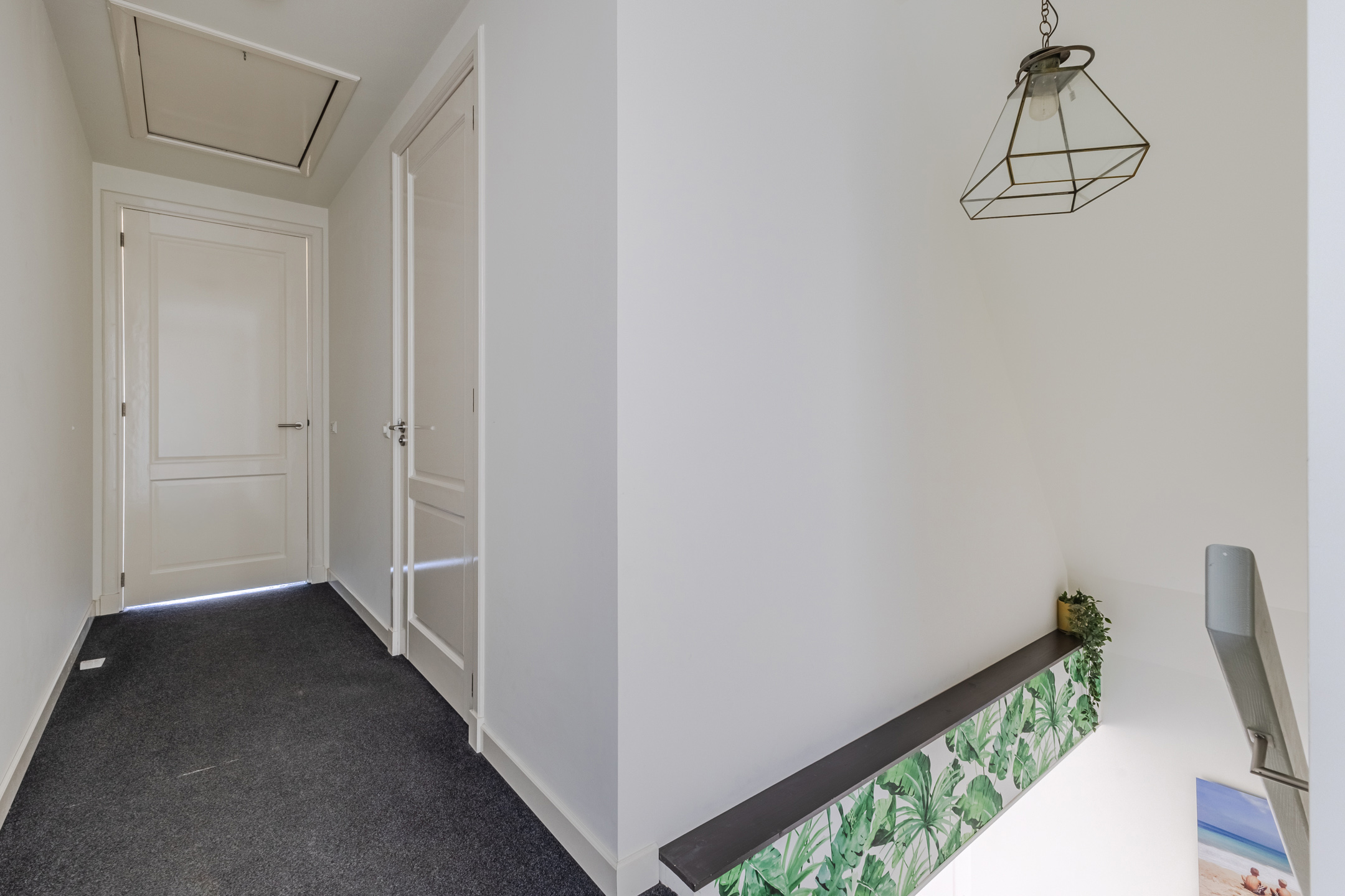 This floor features three bedrooms, a bathroom and a practical storage room. Two bedrooms are located at the front and one at the back. All rooms have carpeted floors and enjoy pleasant natural light.