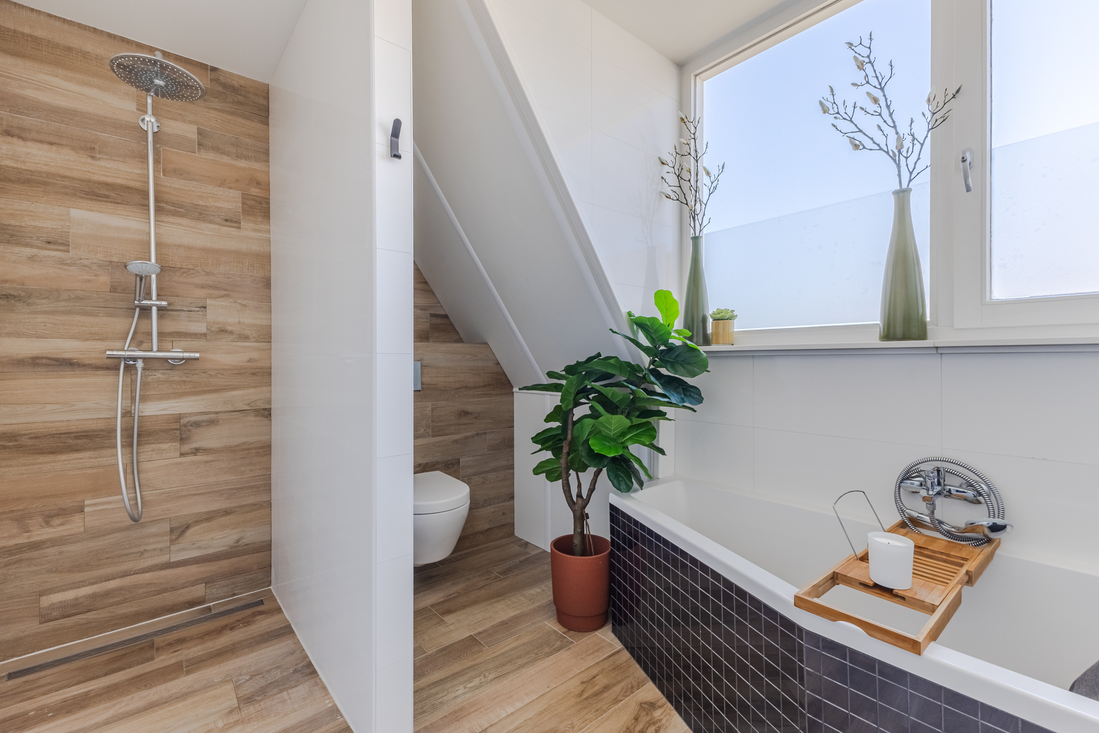 • Luxe badkamer met toilet, wastafel, ligbad en inloopdouche