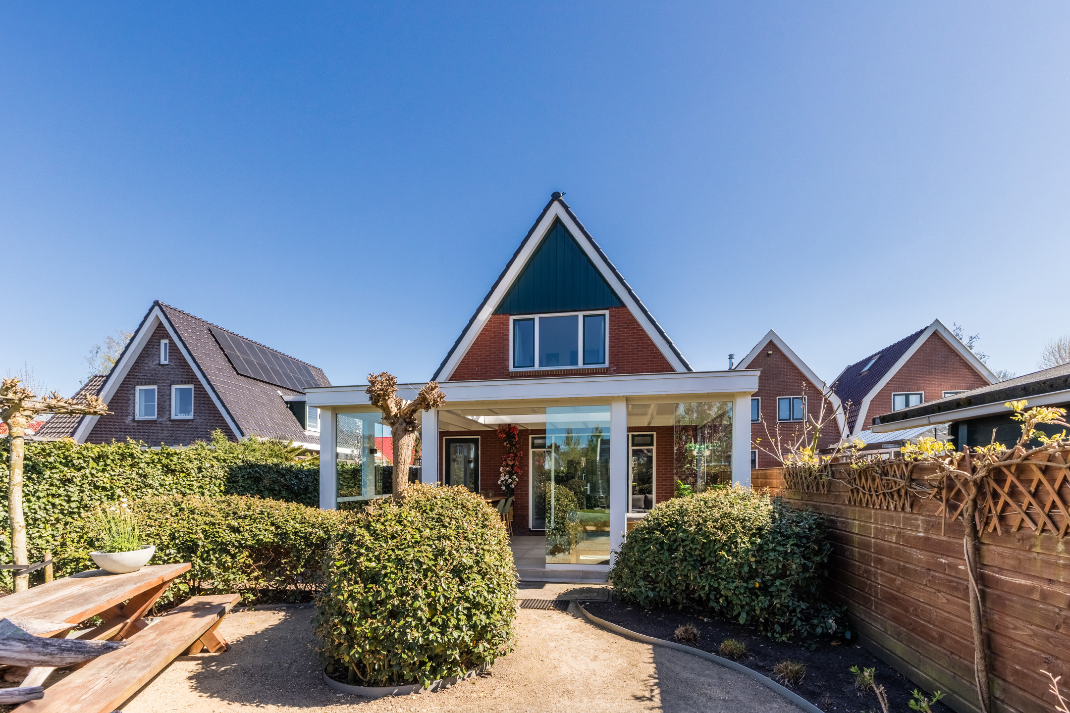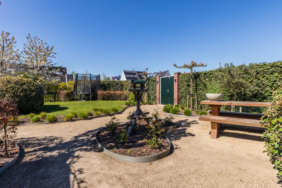 What a dream garden! The spacious northwest-facing garden has been completely redesigned and landscaped with a combination of lawn, walkways and flower beds. The playful layout makes the outdoor space incredibly inviting. There is room for several cozy seating areas and a play area for children. The garden is well-sheltered on all sides, offering plenty of privacy. Here you can enjoy the outdoors in complete peace!