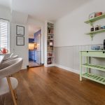 The backyard is a pleasant surprise. With a depth of 12 meters, a favorable southeast orientation, and plenty of privacy, you’ll almost forget you’re living on the Dorpsstraat. The garden features a combination of paving and lawn, with enough space for multiple cozy seating areas to fully enjoy the nice weather. The garden is well sheltered, offering a high level of privacy. The attached brick storage provides ample space for bicycles and garden tools.