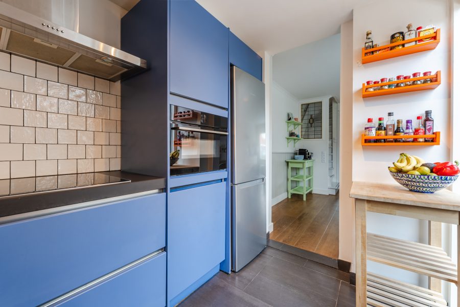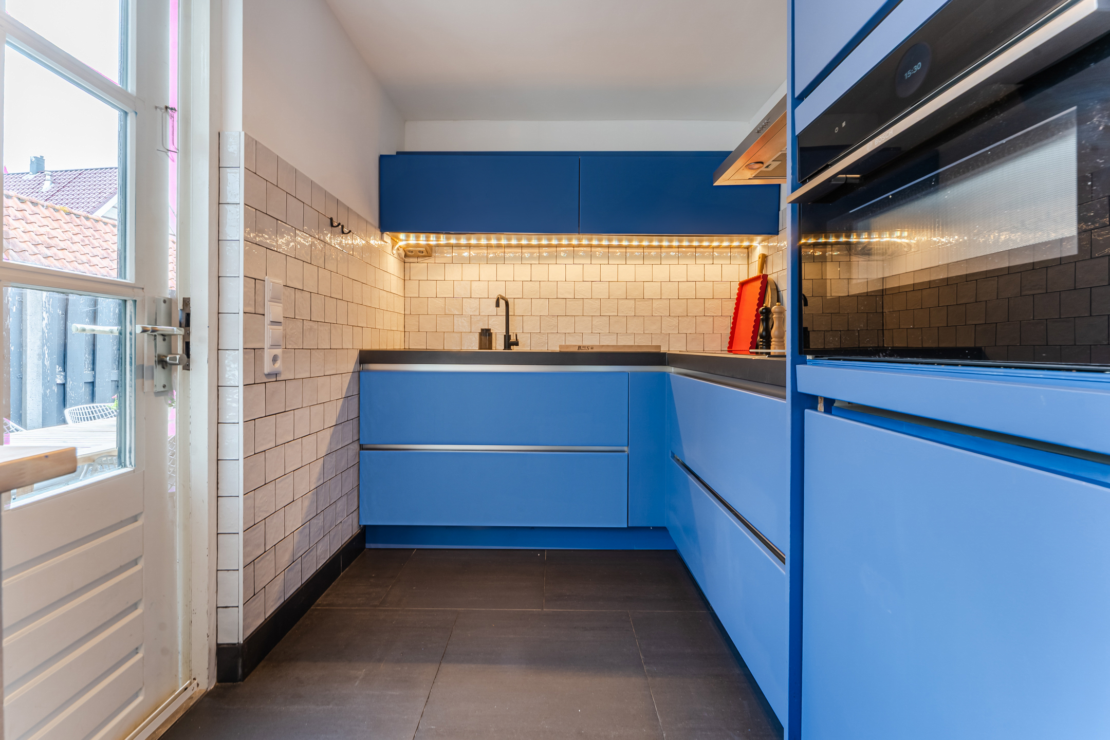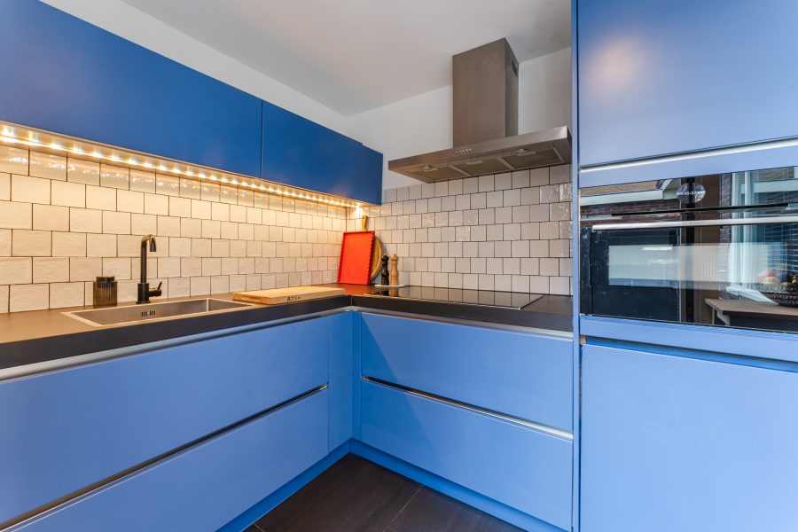 • Blauwe keuken met moderne inbouwapparatuur