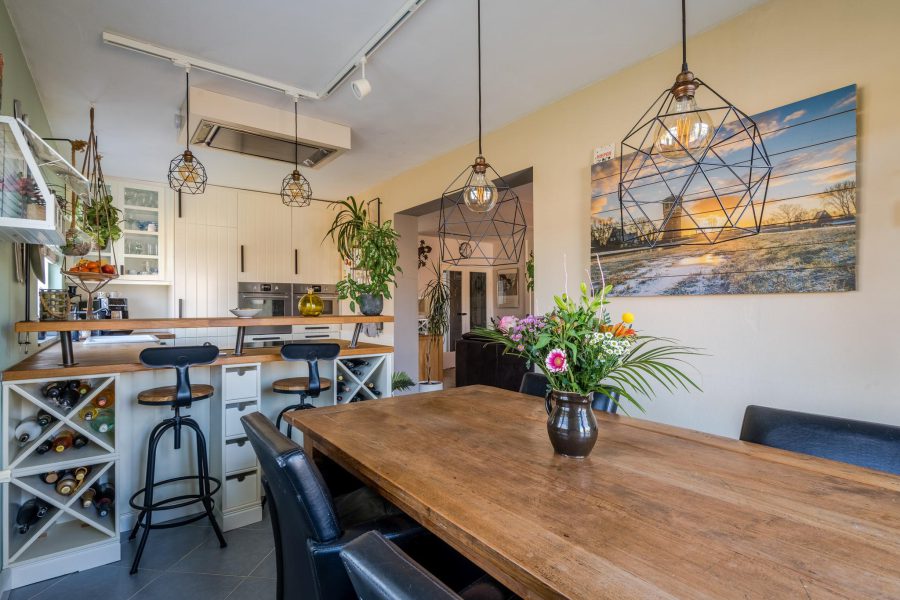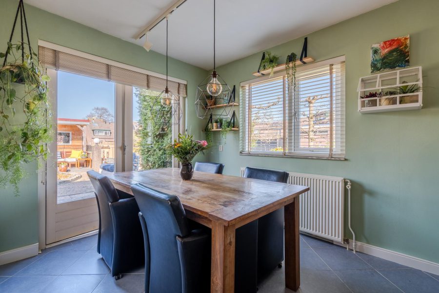 • Aangebouwde eetkamer met openslaande deuren naar de tuin