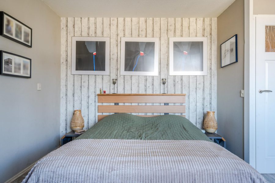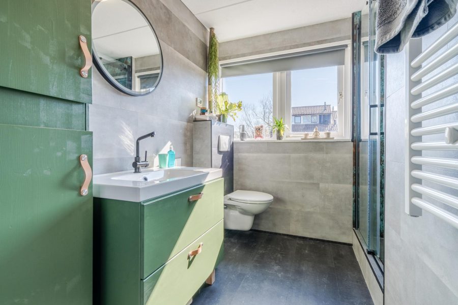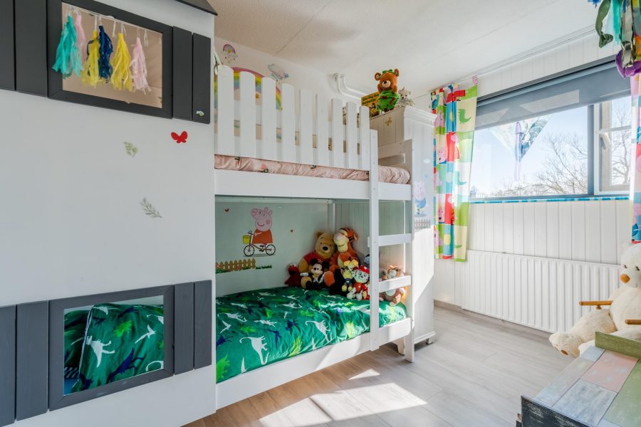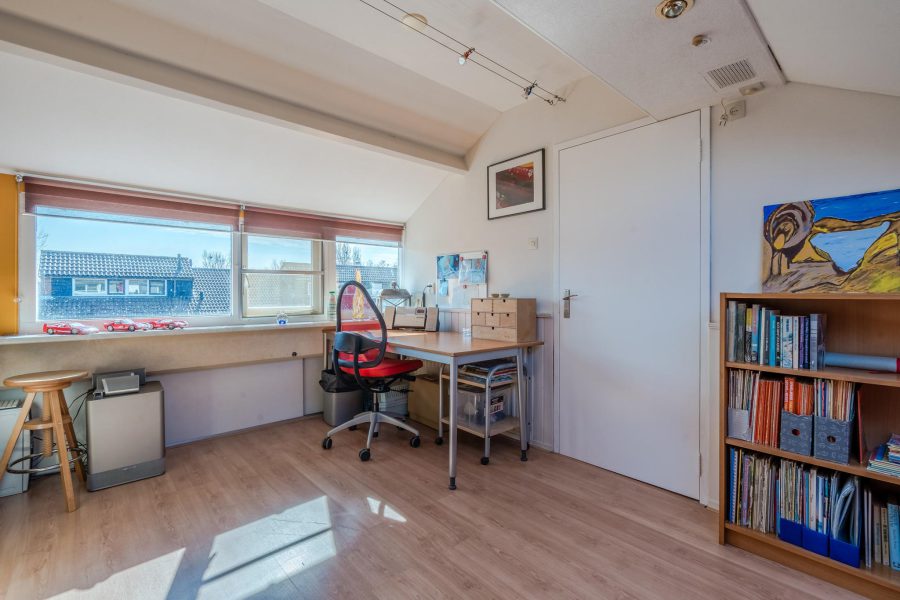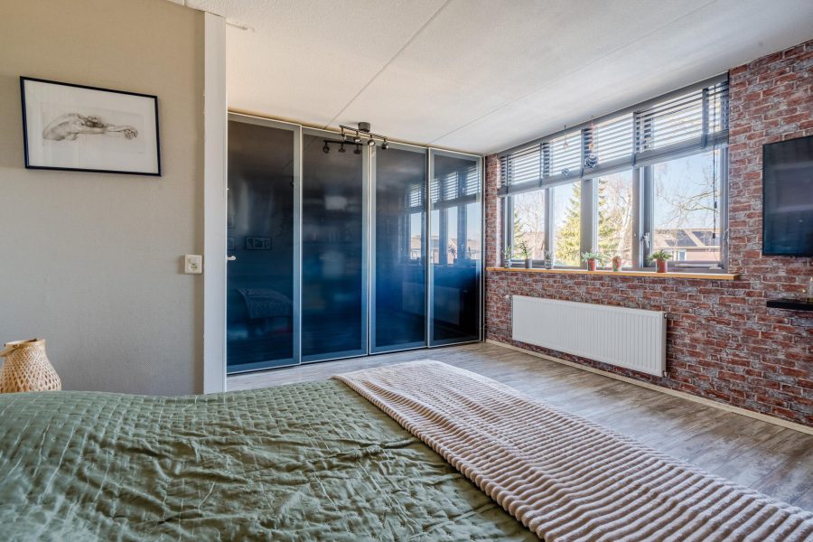 Via de trap bereik je de overloop van deze verdieping. Hier tref je twee ruime slaapkamers en de badkamer aan. Eén slaapkamer ligt aan de achterzijde (voorheen twee kamers) en heeft een vaste kast. De tweede slaapkamer ligt aan de voorzijde, naast de badkamer. De badkamer is gerenoveerd in 2024 en is voorzien van een badmeubel met wastafel en spiegel, een zwevend toilet en een inloopdouche met hand- en regendouche. Beide kamers hebben een prettige lichtinval en zijn keurig afgewerkt.