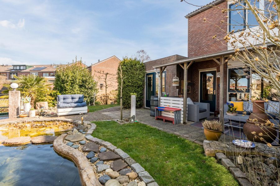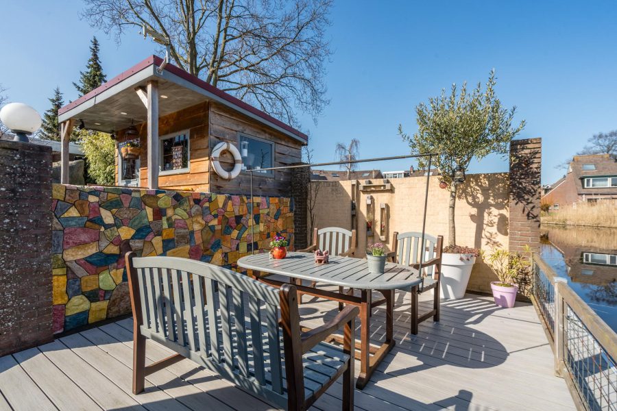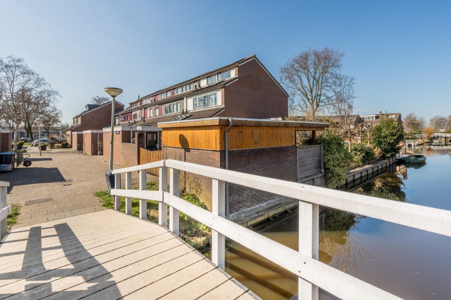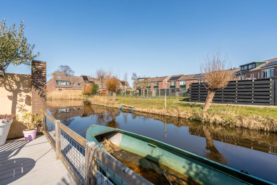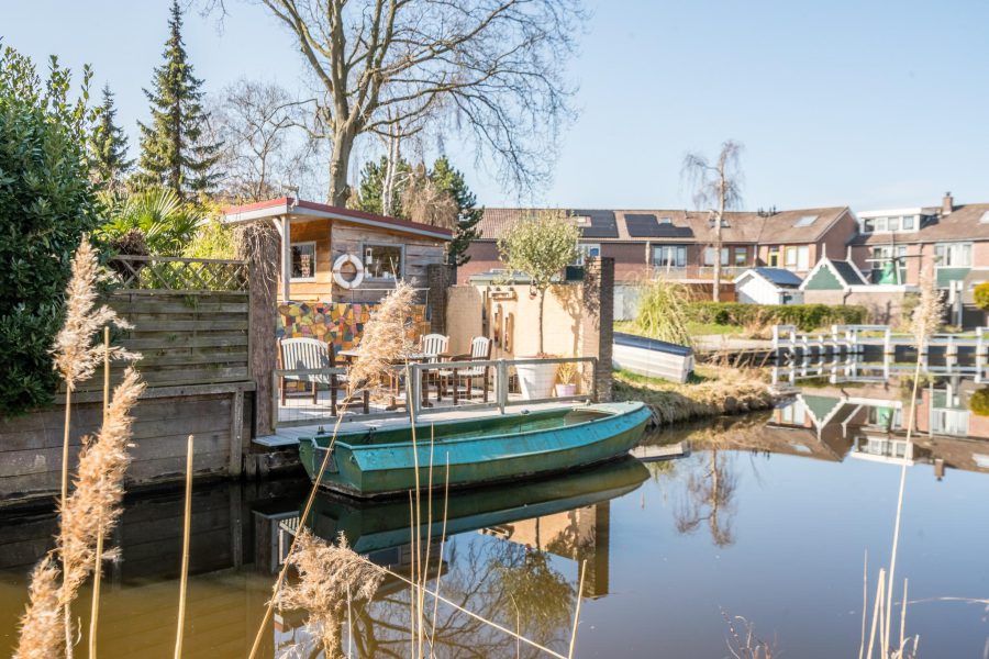 In a beautiful spot on waterways this spacious, playfully laid-out CORNER HOUSE with beautifully landscaped garden and two storage/garden sheds. The house has a waterside terrace. Inside, you will find a spacious, bright living room with separate dining room and a beautiful open kitchen. You will also find 3 spacious bedrooms. A very nice house with lots of extras where everyone has plenty of space and privacy. So come and view this property soon! We take you with us: