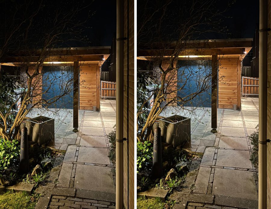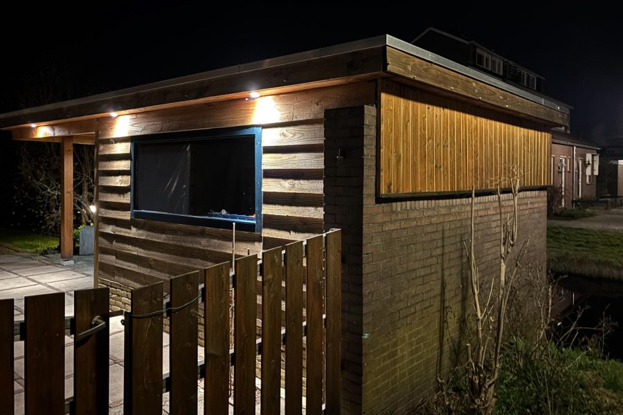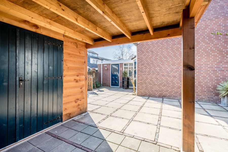 • Overkapping aan de woning en twee tuinhuizen met overkapping