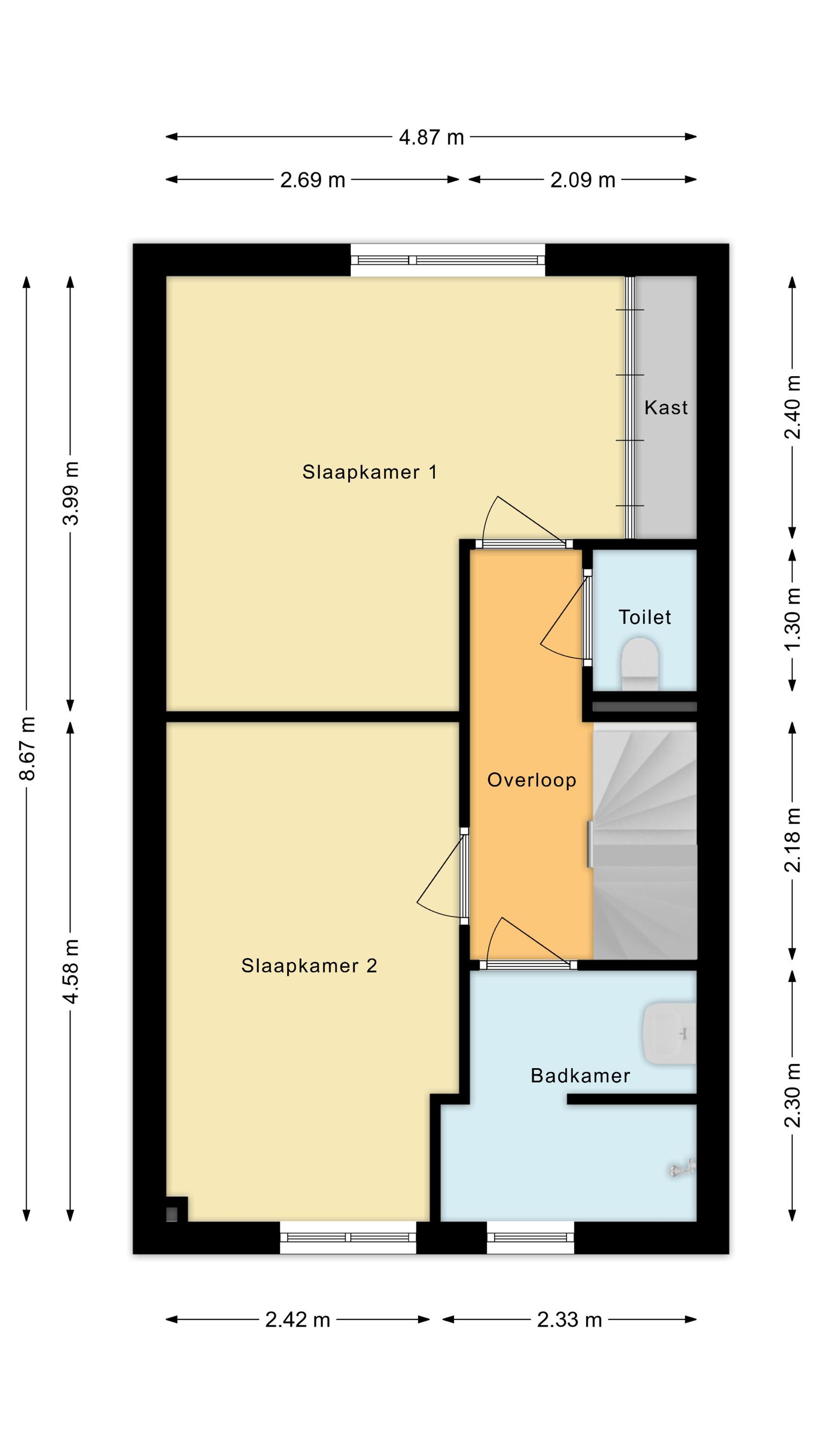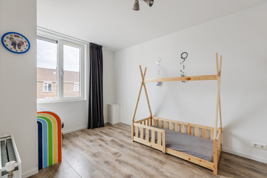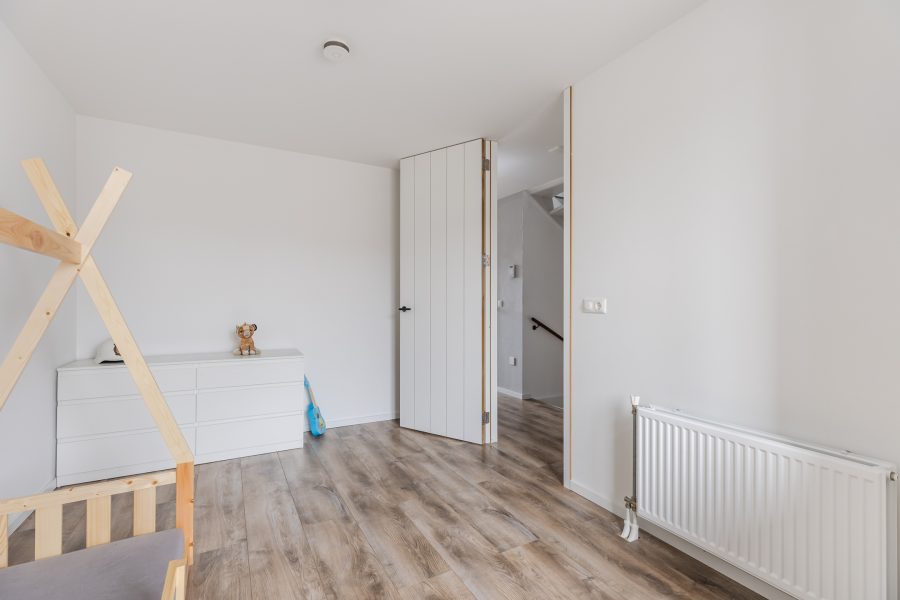 Op deze verdieping vind je de eerste twee slaapkamers, een badkamer en een separaat toilet. Beide slaapkamers zijn lekker ruim en keurig afgewerkt. Daarnaast profiteren de slaapkamers van veel natuurlijk licht. De kamer aan de achterzijde is uitgerust met een grote kast.