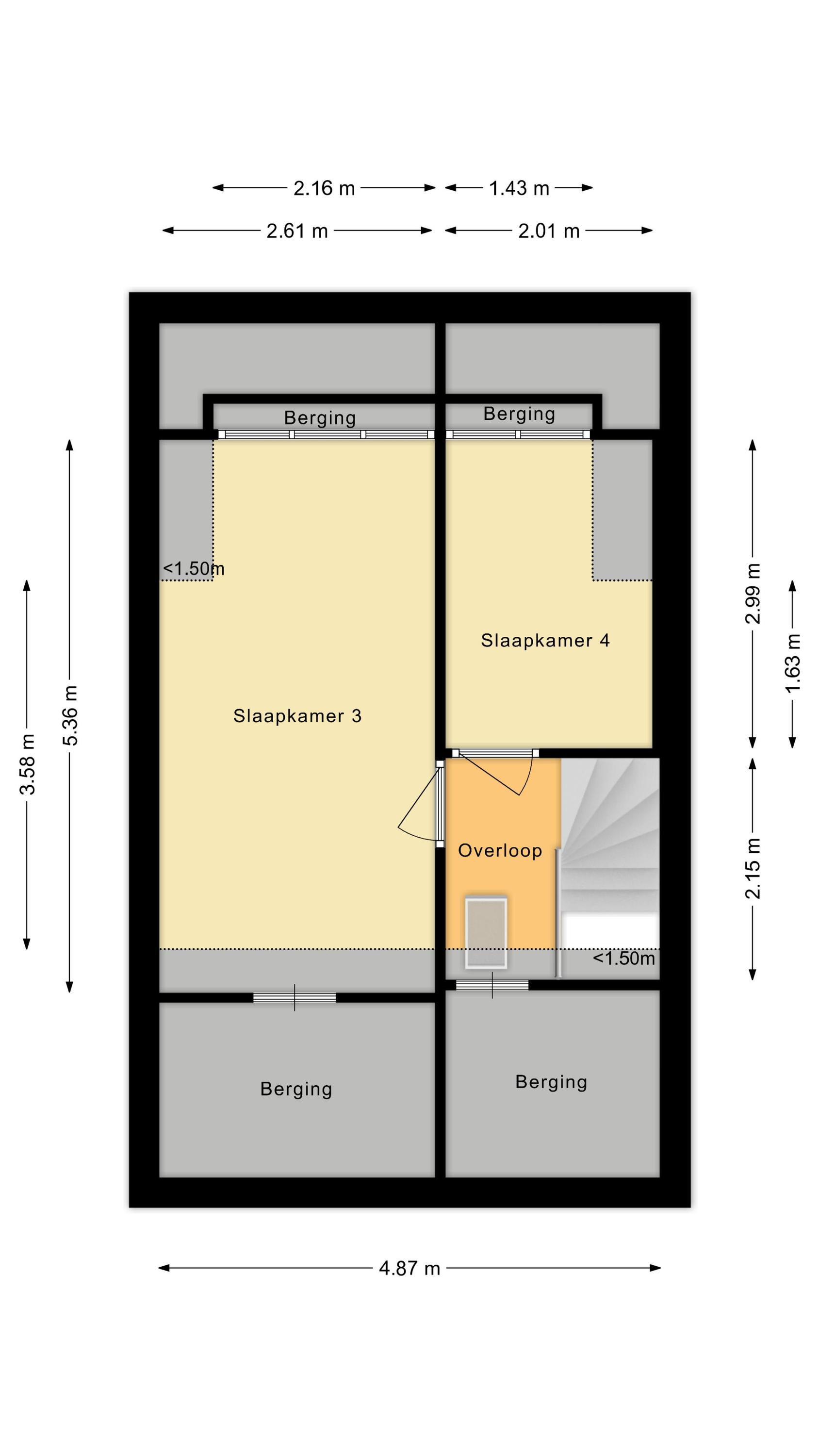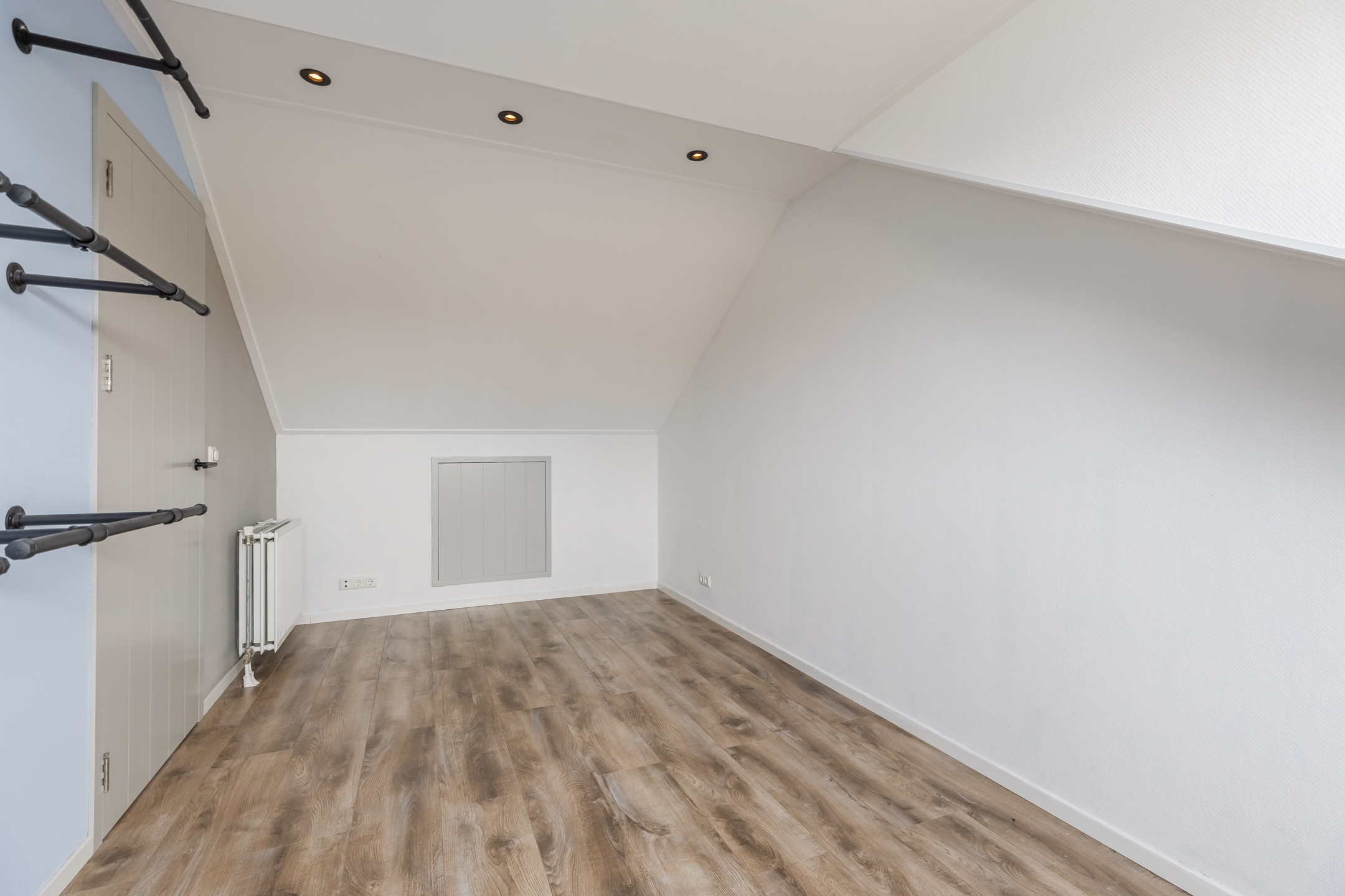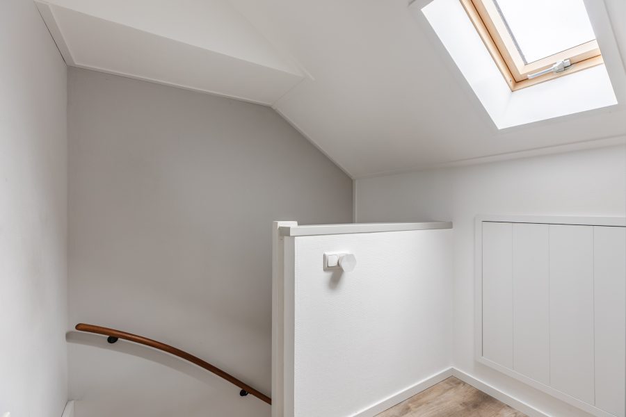 Een vaste trap geeft toegang tot de overloop van deze verdieping. Vanaf hier bereik je een berging en de derde en vierde slaapkamer van het huis. Beide slaapkamers zijn fraai afgewerkt, heerlijk licht en voorzien van inbouwspots. Daarnaast biedt deze verdieping veel bergruimte.