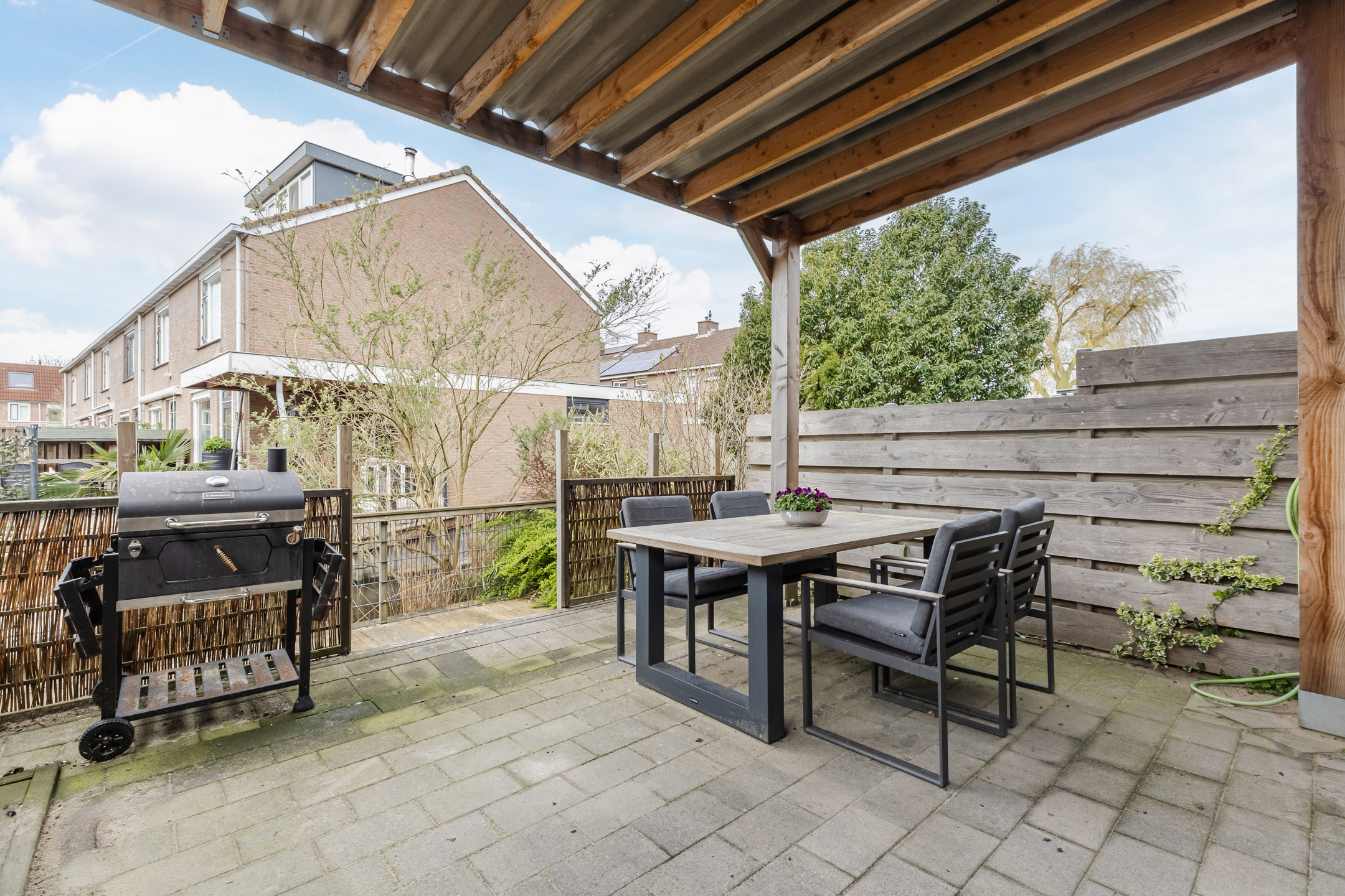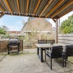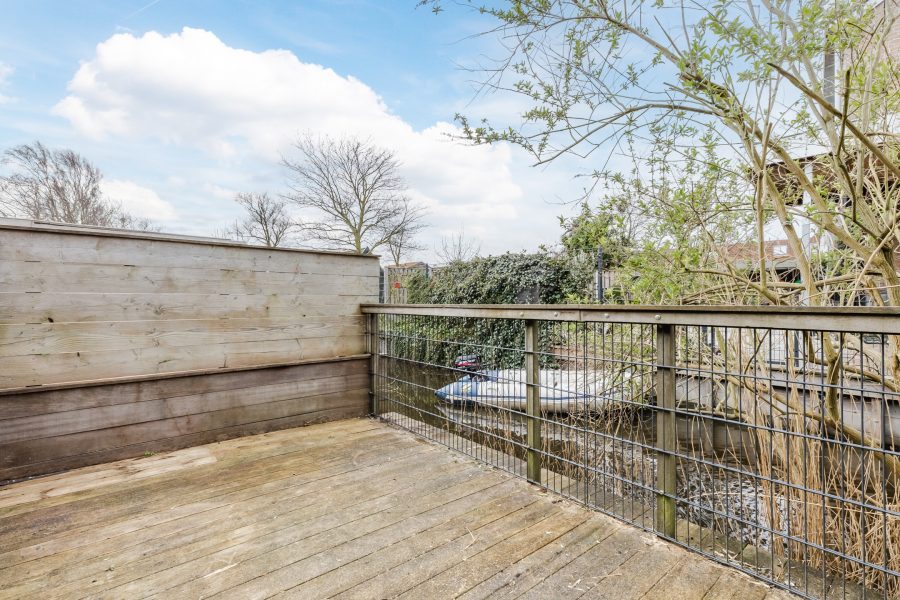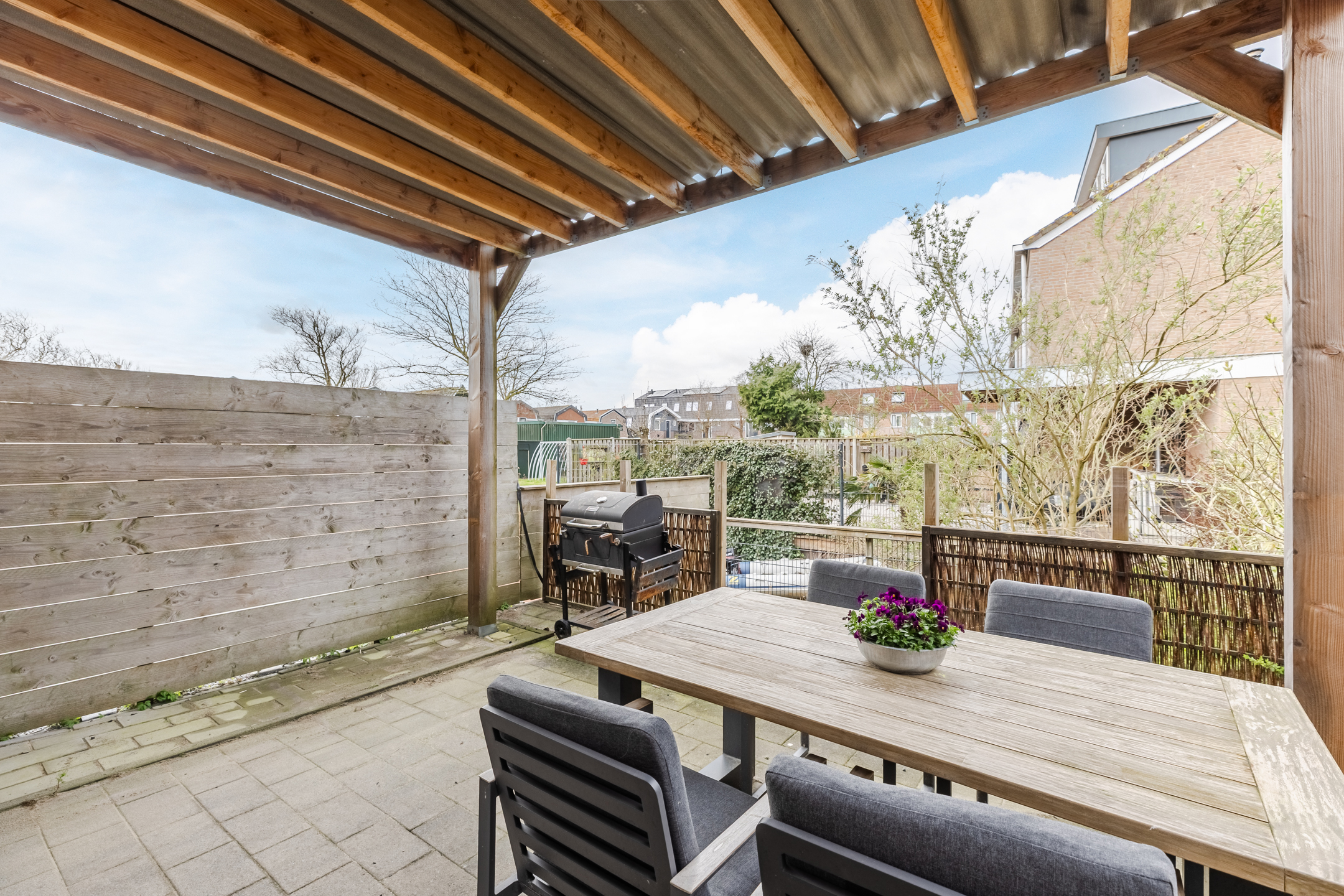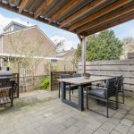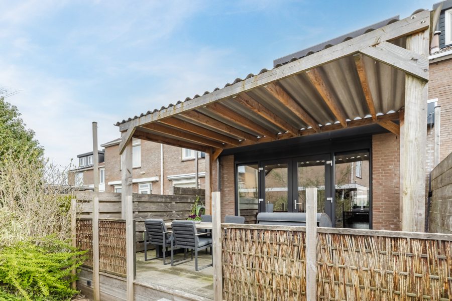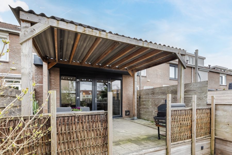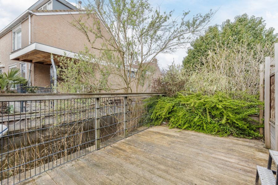 The house features a neatly landscaped backyard by the water. The garden is low-maintenance, featuring paving and a wooden deck. Adjacent to the house is a new canopy (2025) where you can relax comfortably under cover. Thanks to the fences on both sides, you will enjoy plenty of privacy. This garden is nothing short of a delight!