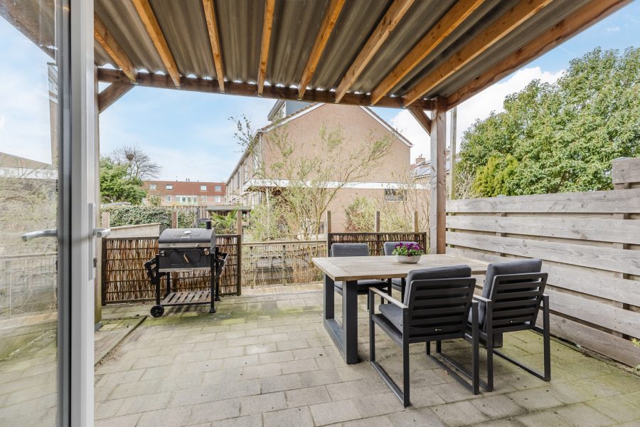 Het huis beschikt over een netjes aangelegde achtertuin aan het water. De tuin is onderhoudsvriendelijk ingericht met bestrating en een houten vlonder. Direct aan de woning grenst een nieuwe overkapping (2025) waar je heerlijk overdekt kunt loungen. Dankzij de schuttingen aan beide kanten ervaar je volop privacy. In deze tuin is het niets anders dan genieten!