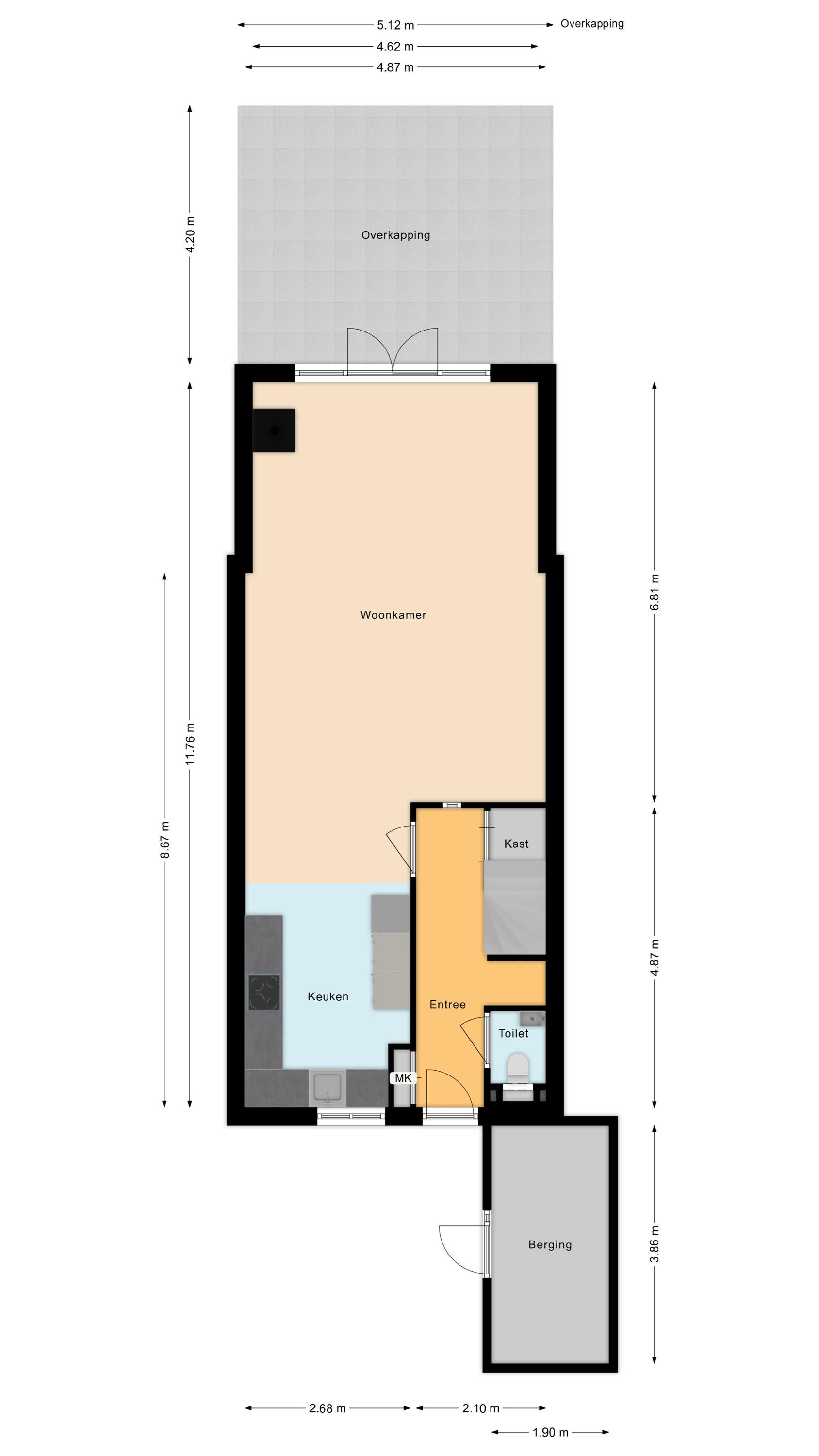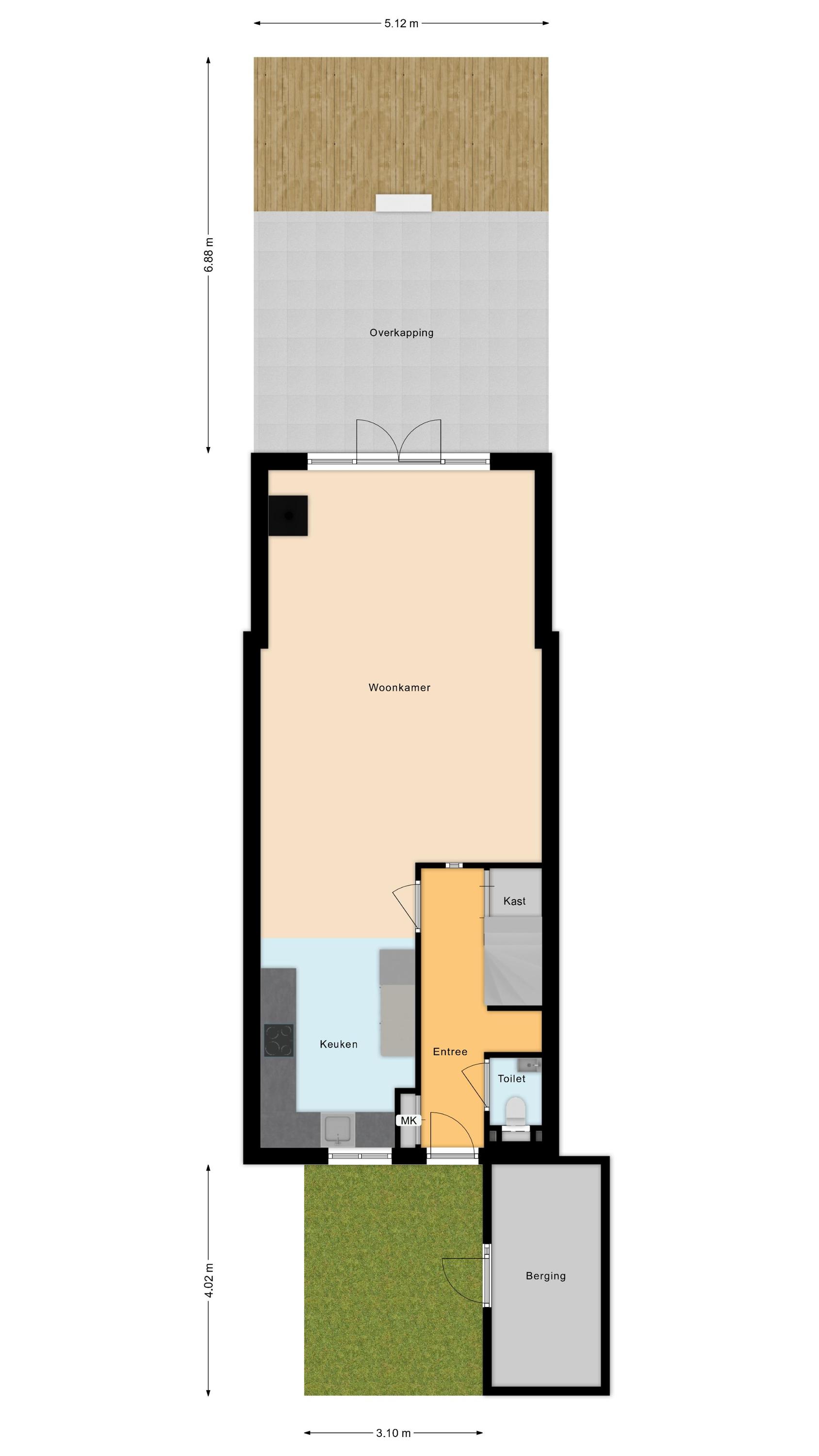 Via de betegelde voortuin bereik je de (fietsen)berging en voordeur van de woning. Achter de voordeur bevindt zich een ruime en netjes afgewerkte entreehal. Vanuit hier is er toegang tot de meterkast, een toiletruimte met zwevend toilet en fonteintje, de trap naar de eerste verdieping, een bergkast en de woonkamer.