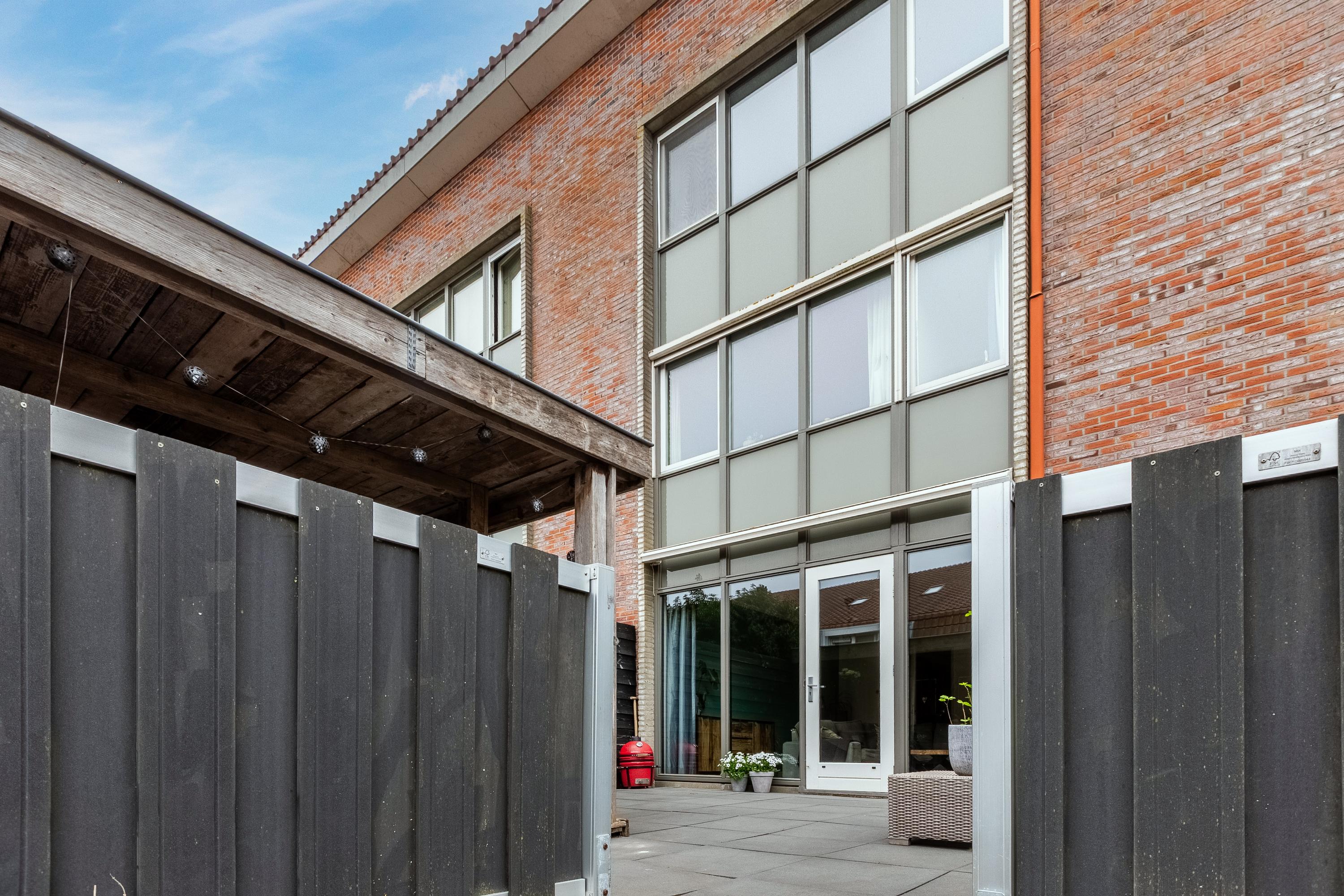 De woning heeft een voortuin met eigen parkeerplaats en een onderhoudsvriendelijke, grotendeels betegelde achtertuin met houten tuinhuis/overkapping met een heerlijke loungeplek. Met een trapje bereik je een vlonder aan het water. Een heel fijne, beschutte tuin waar je heerlijk kunt genieten en gezellig buiten kunt eten in de zomermaanden.