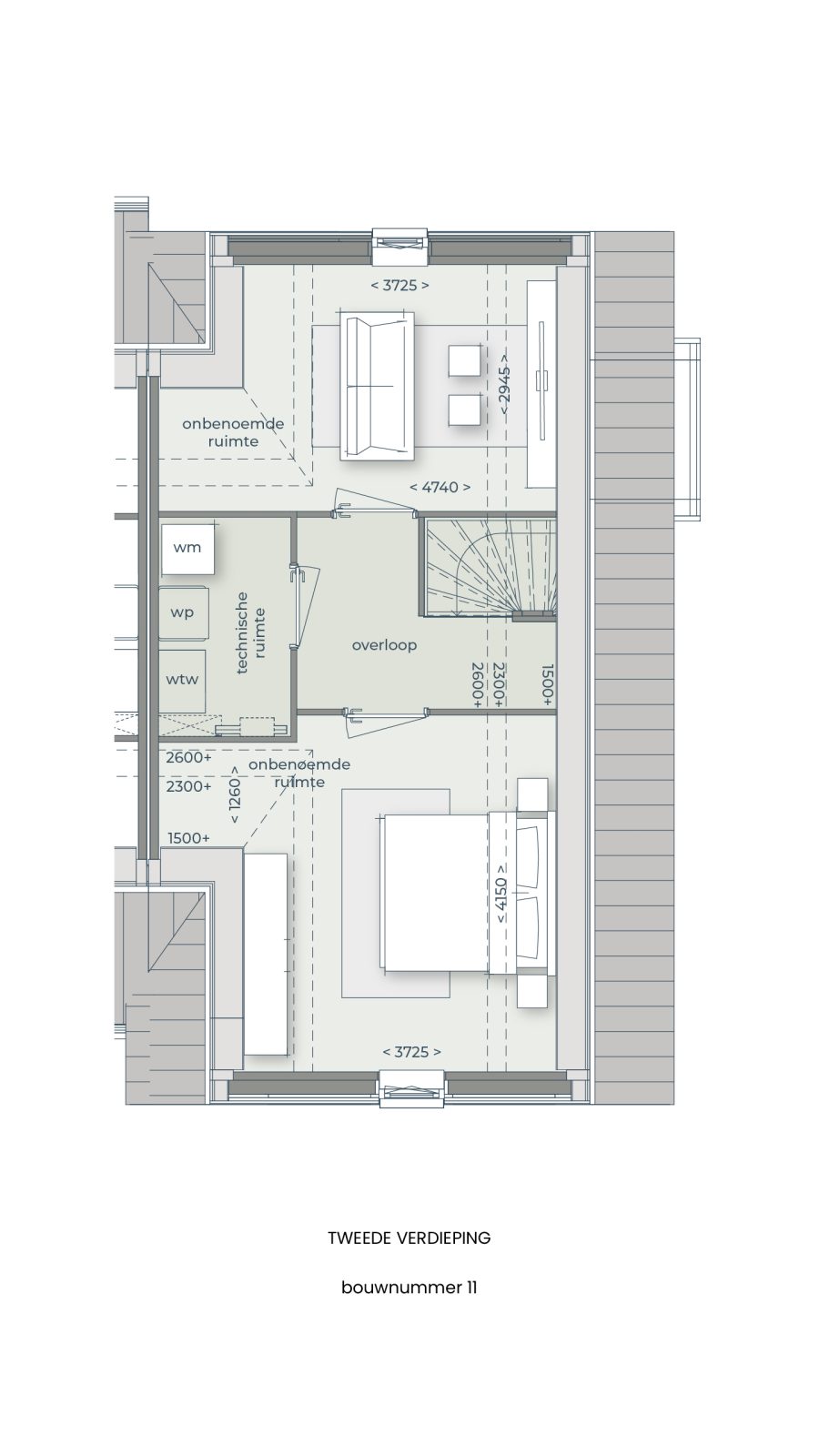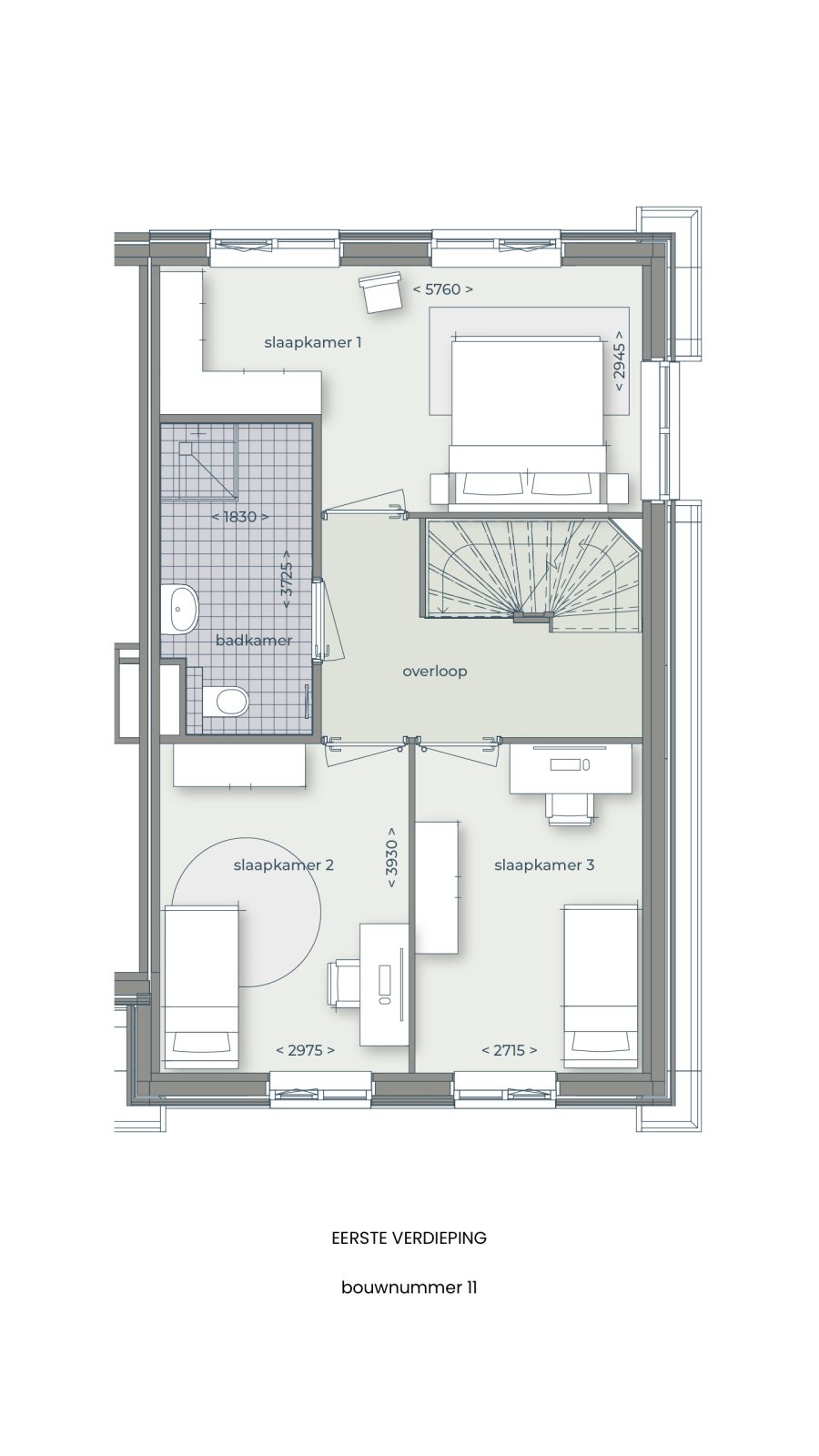 – Samenvoegen van slaapkamers op de eerste verdieping