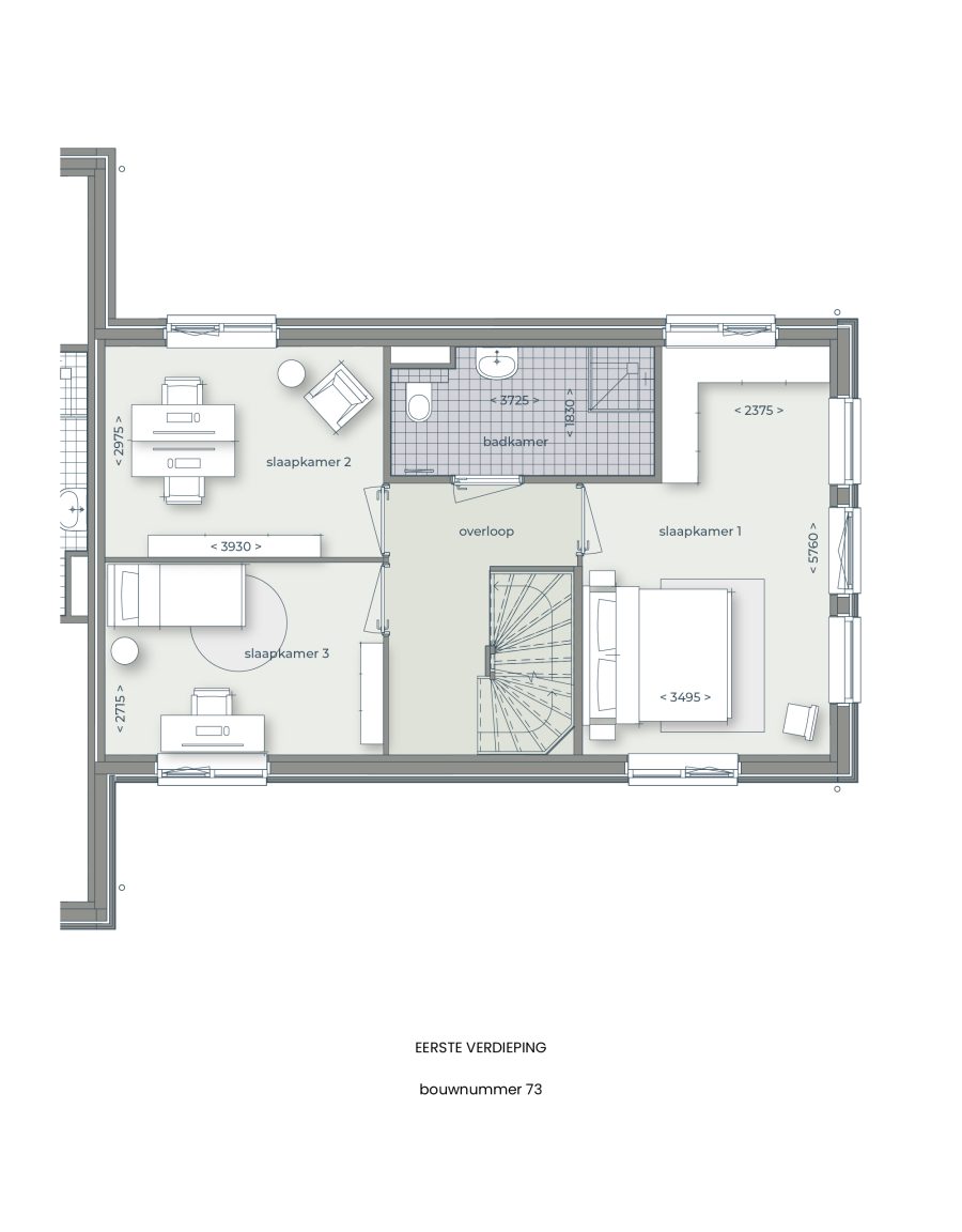 – Samenvoegen van slaapkamers op de eerste verdieping