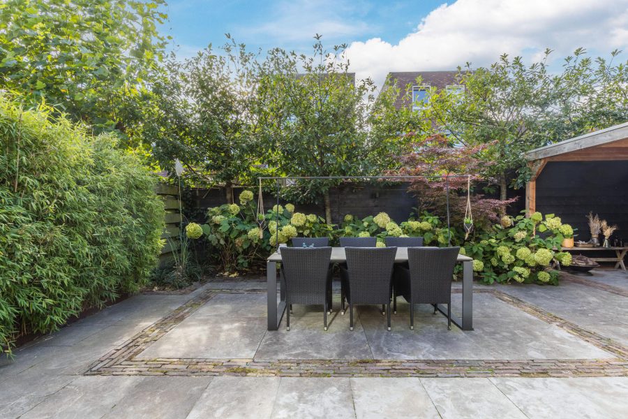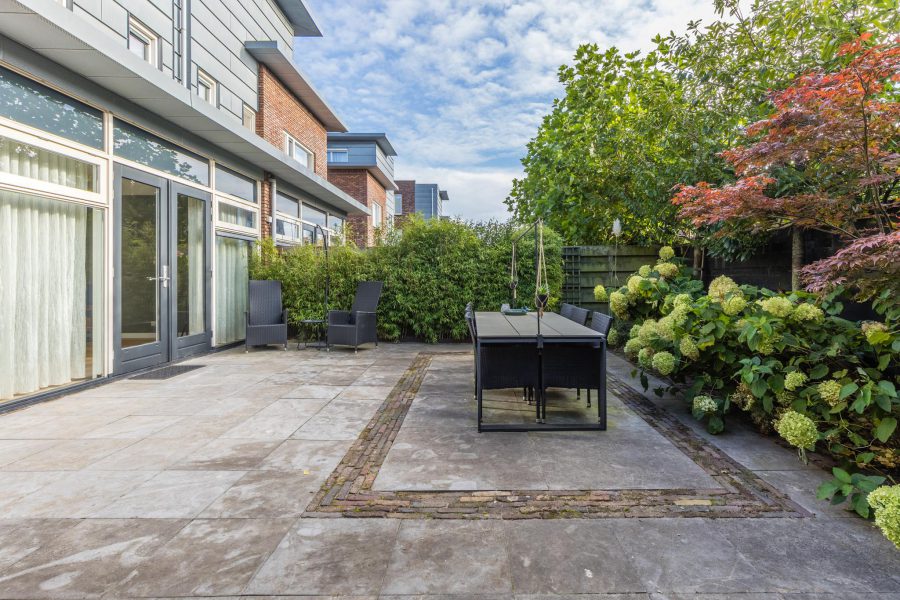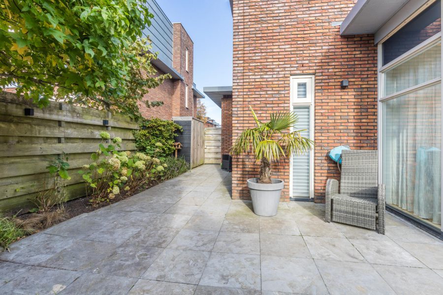 The house has a large, beautifully landscaped backyard. The garden consists of both tiles and greenery. Thanks to the available space, the garden offers plenty of possibilities. You can create a lovely lounge area here, but there is also enough space to create a play area for children. It is a wonderful place to spend a lot of time when the sun shines.