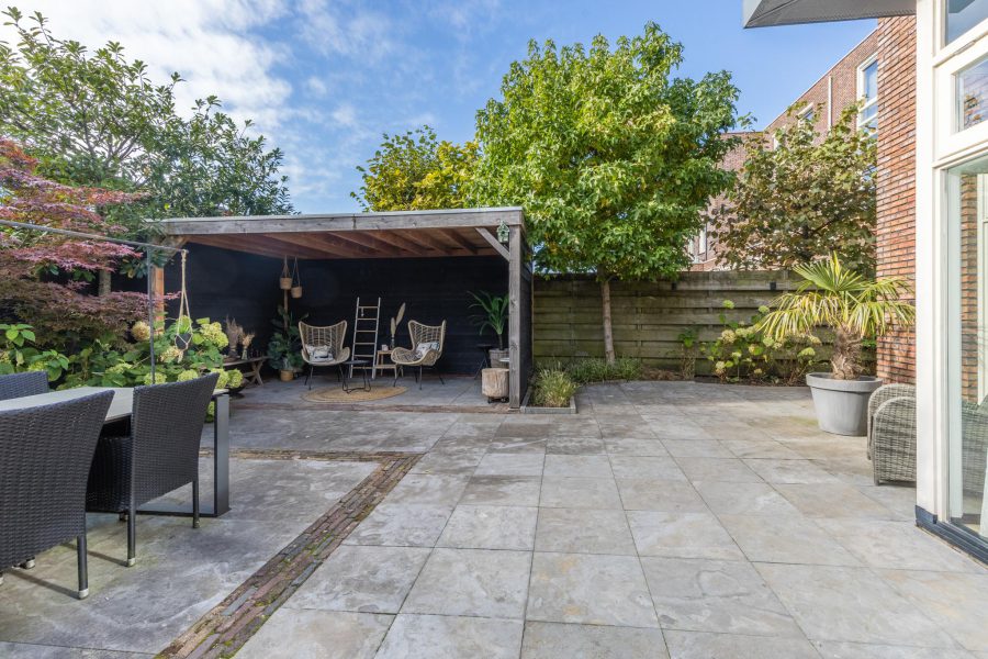 Het huis heeft een grote, fraai aangelegde achtertuin. De tuin bestaat uit zowel tegels als groen. Dankzij de beschikbare ruimte biedt de tuin genoeg mogelijkheden. Je kunt hier een heerlijke loungeplek maken, maar er is ook genoeg ruimte om een speelgelegenheid voor kinderen te creëren. Het is een heerlijke plek om veel tijd door te brengen als het zonnetje schijnt.