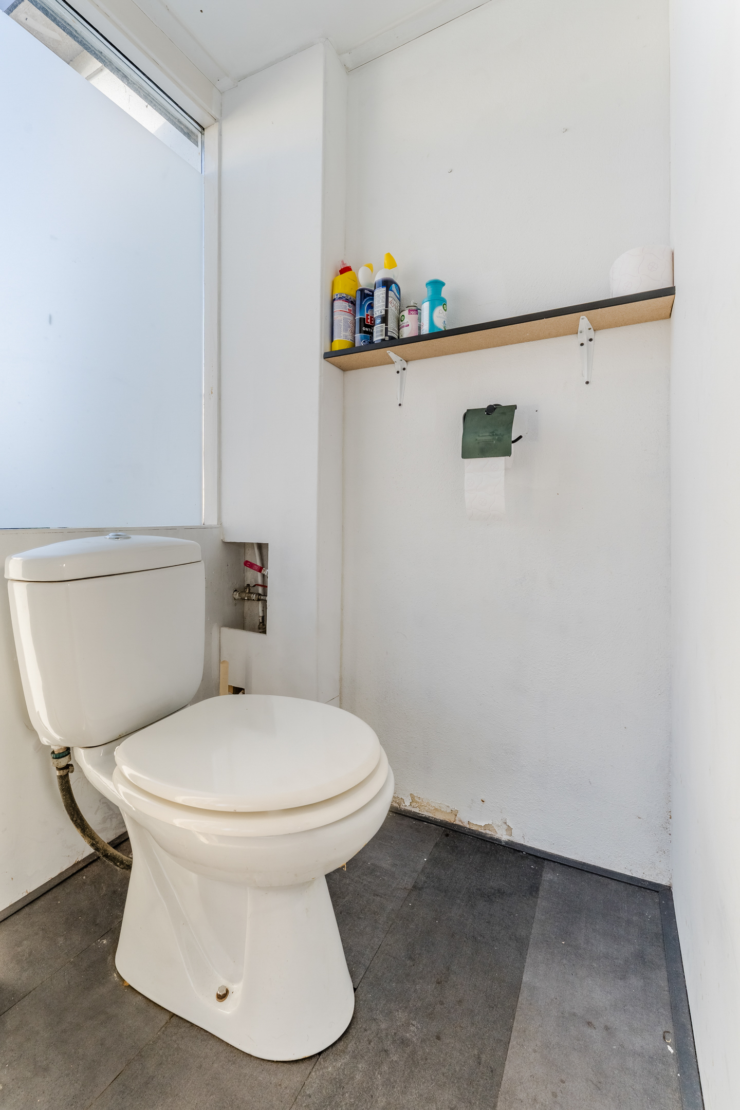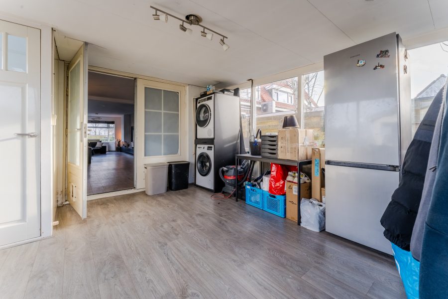 At the back of the house is another multifunctional room (possibility of a fourth bedroom). Here you will find the connections for the washing machine and dryer. This space is ideal as an office, hobby room or utility room. From here you have access to the backyard and a toilet room with a standing toilet.