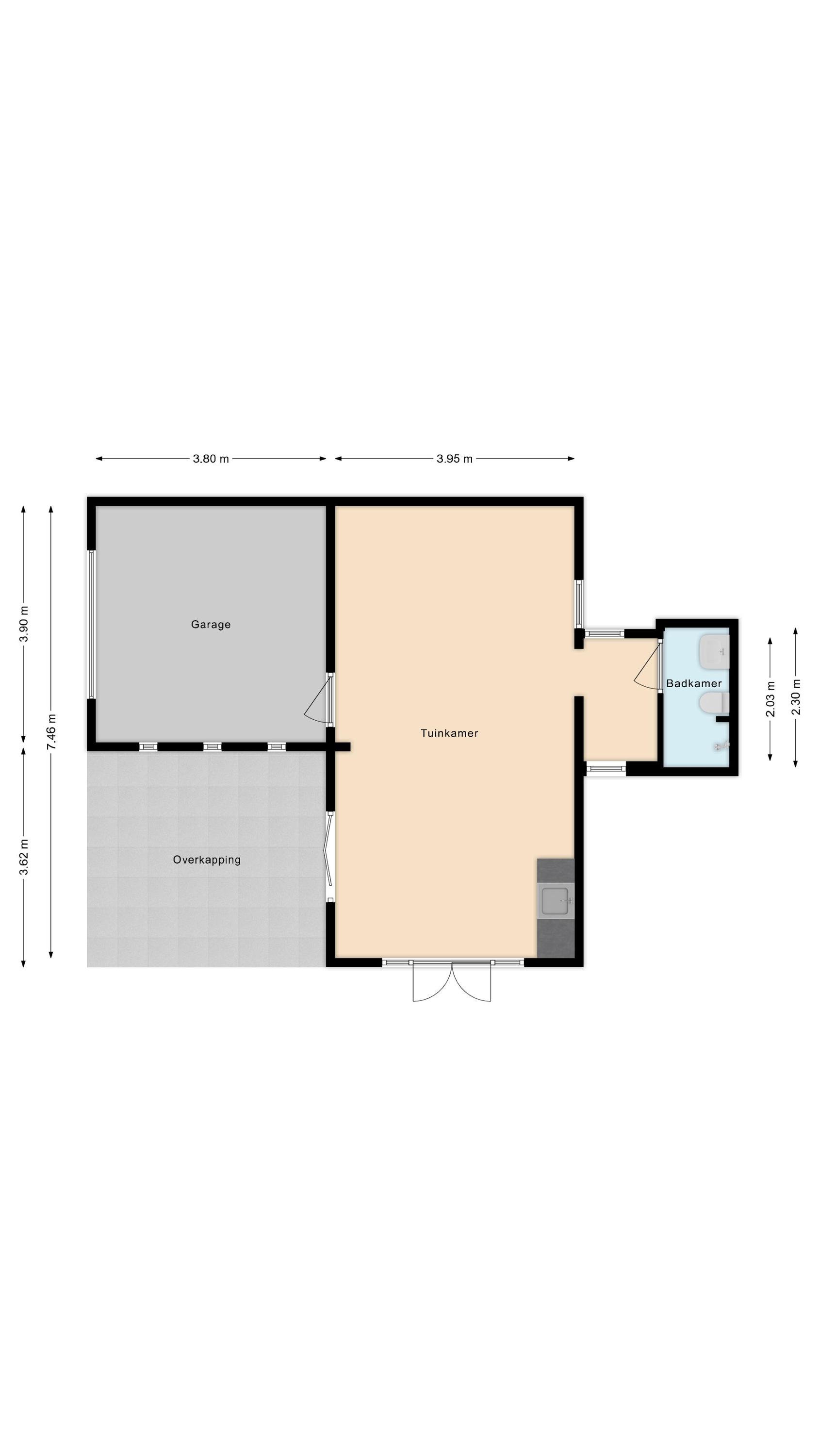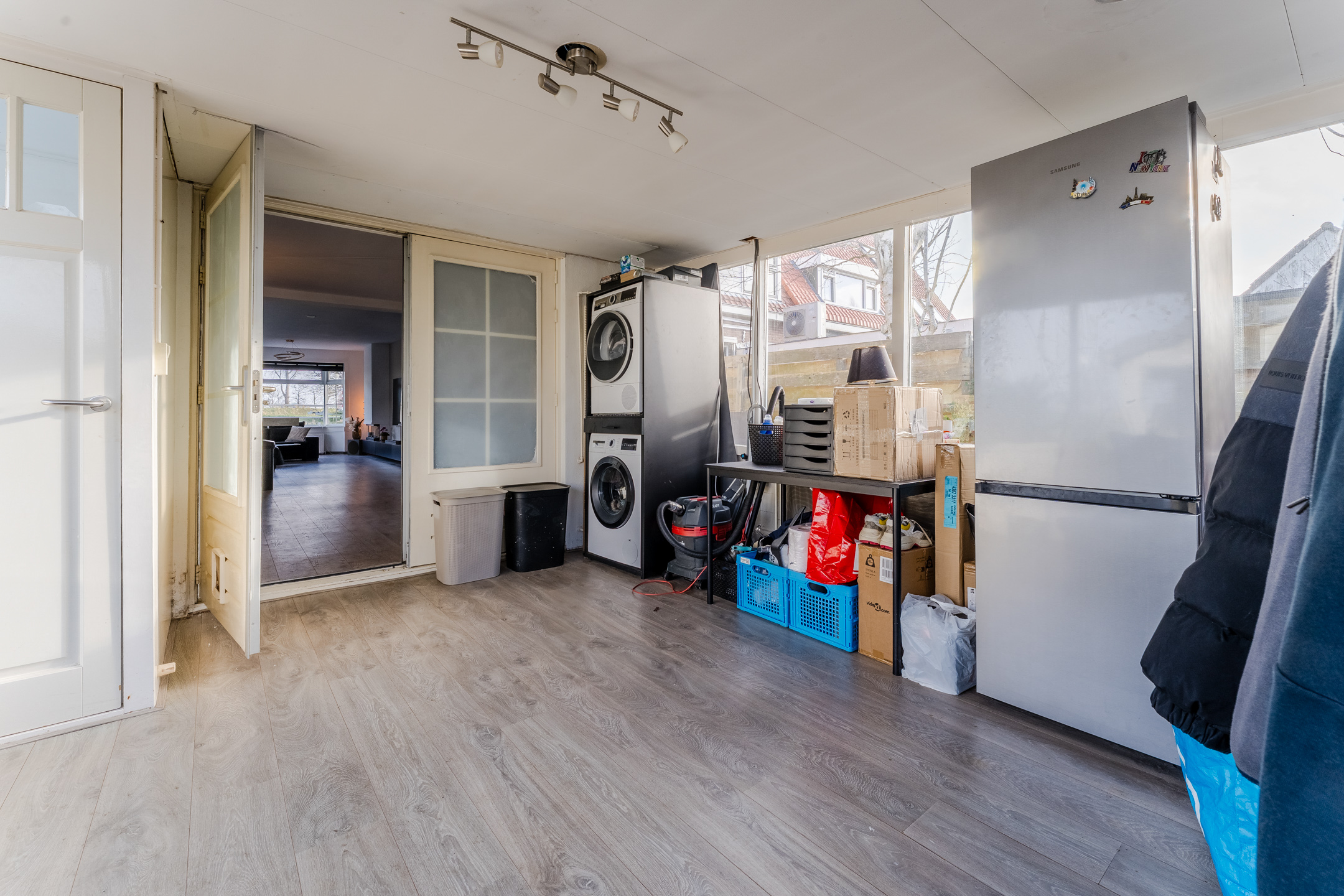 Daarnaast biedt de tuinkamer toegang tot de garage, waar je ruimte hebt om spullen op te bergen.