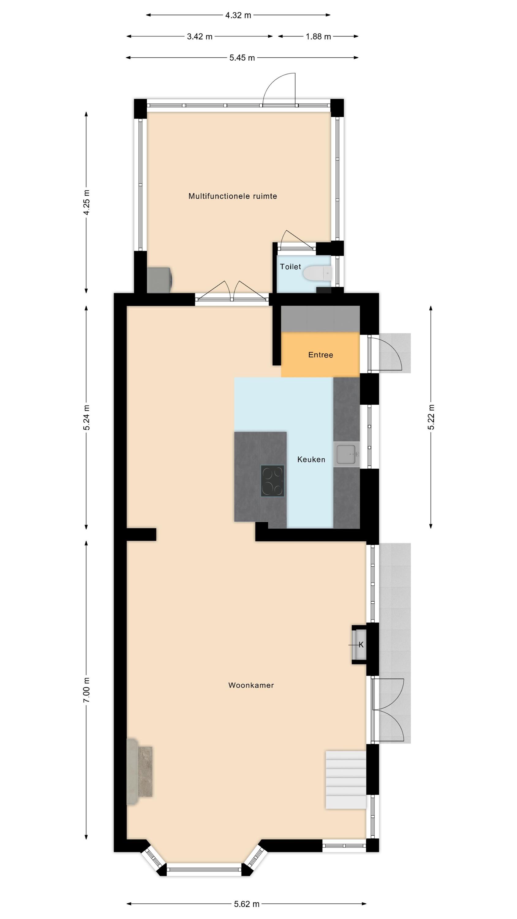 • Multifunctionele ruimte (mogelijkheid tot een extra slaapkamer)