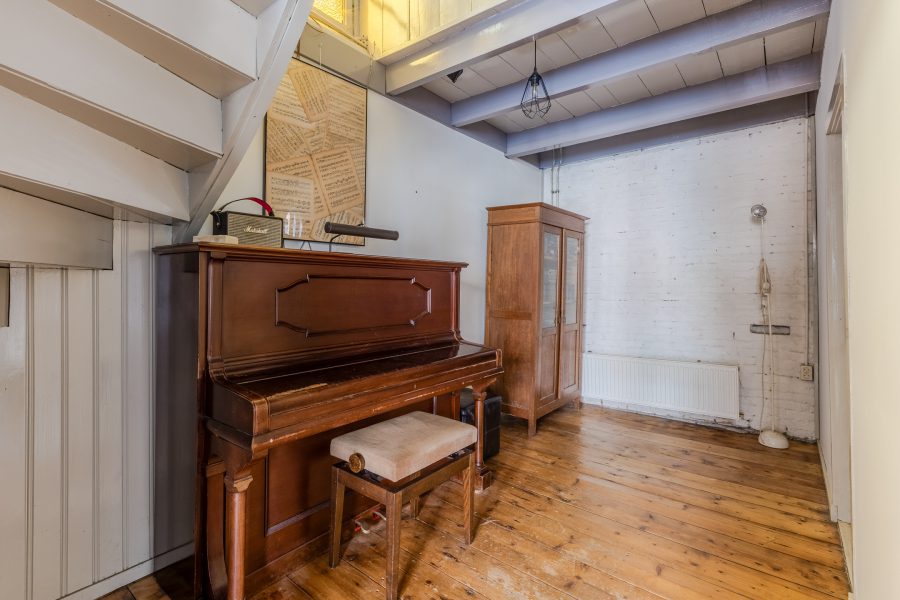 Via the staircase in the hall, you reach the landing of this floor. Here you will find two storage closets, two bedrooms and two in-between rooms. One bedroom is at the rear and one at the front of the house. Here too, the beams are visible and the atmosphere has been preserved. There are wooden floorboards and natural light comes in through windows and Velux skylights. A nice space to use according to your own ideas and possibilities.