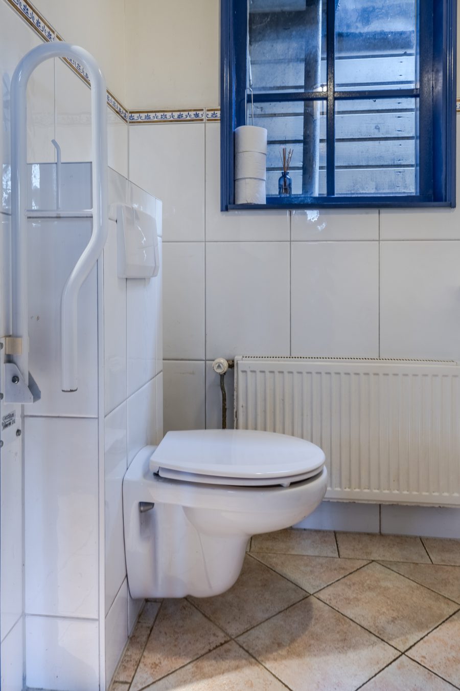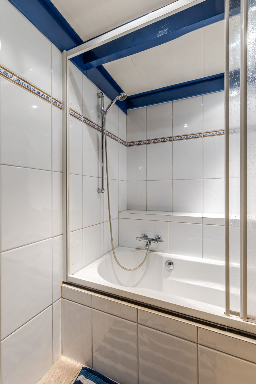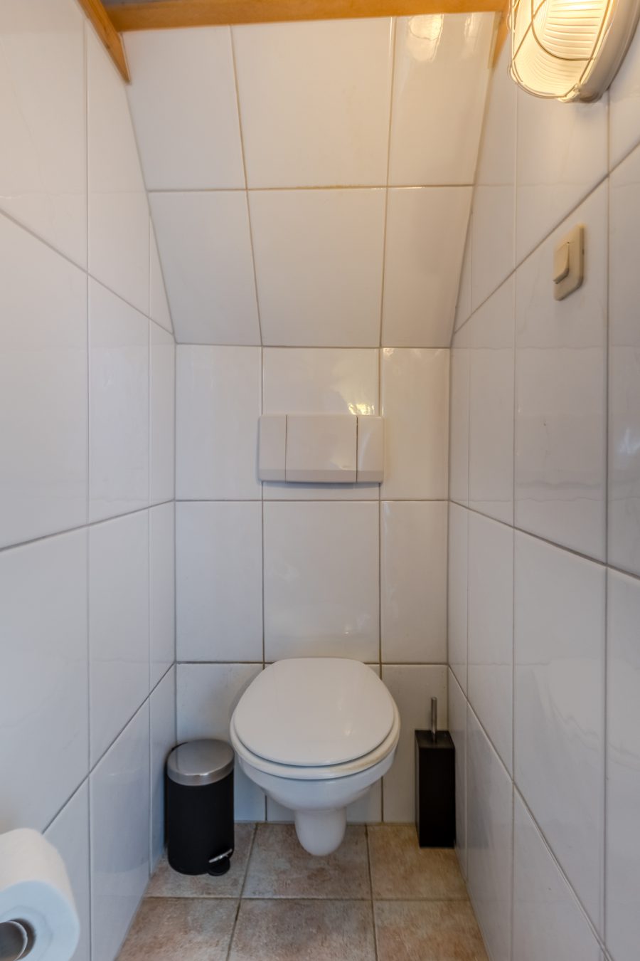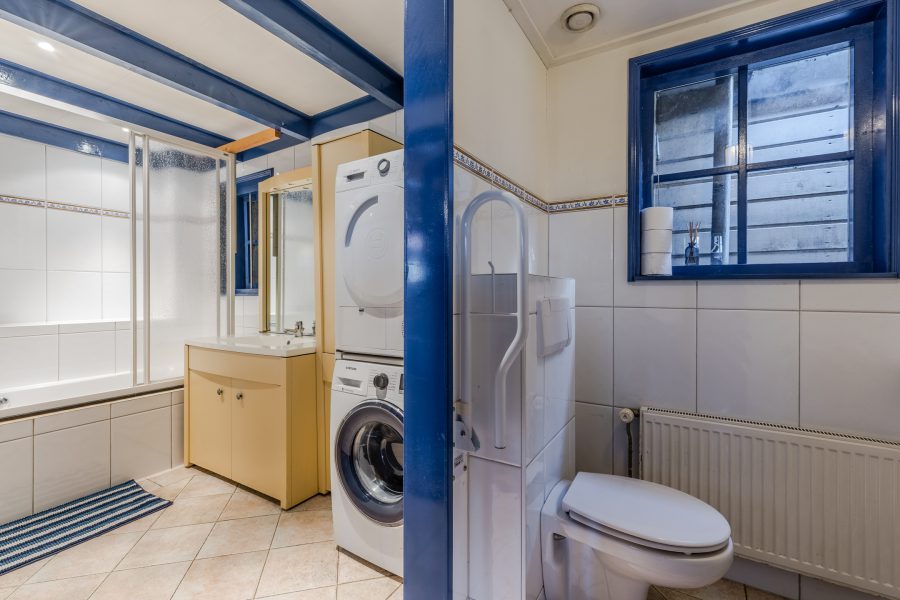 In de badkamer tref je een badmeubel met wastafel en spiegel en een ligbad met douchekop aan. Ook de aansluiting voor het witgoed is hier te vinden. Vanuit de badkamer heb je een open verbinding met de toiletruimte. In de badkamer en het toilet heb je de beschikking over vloerverwarming.