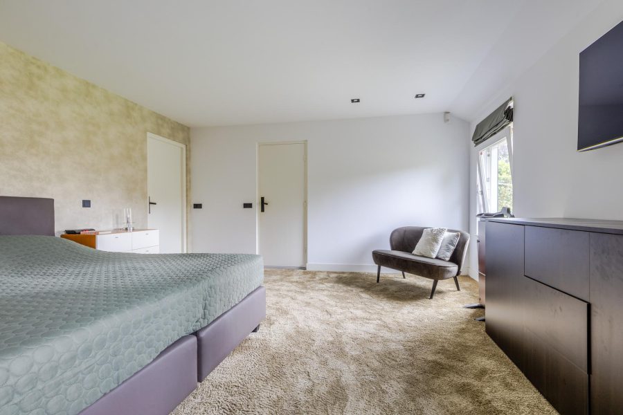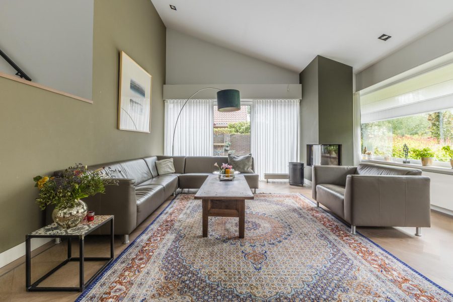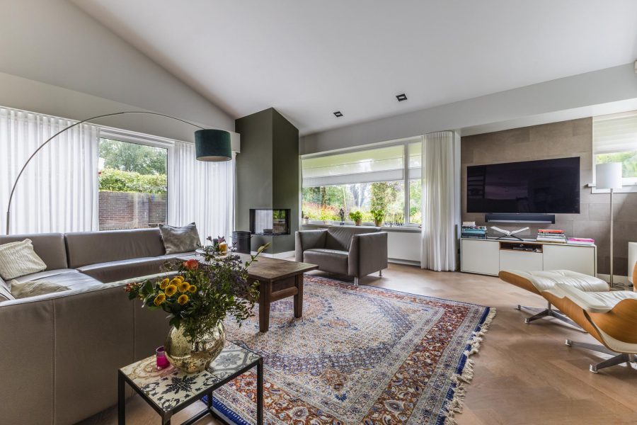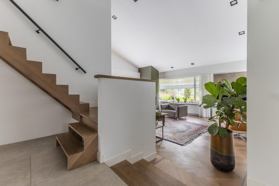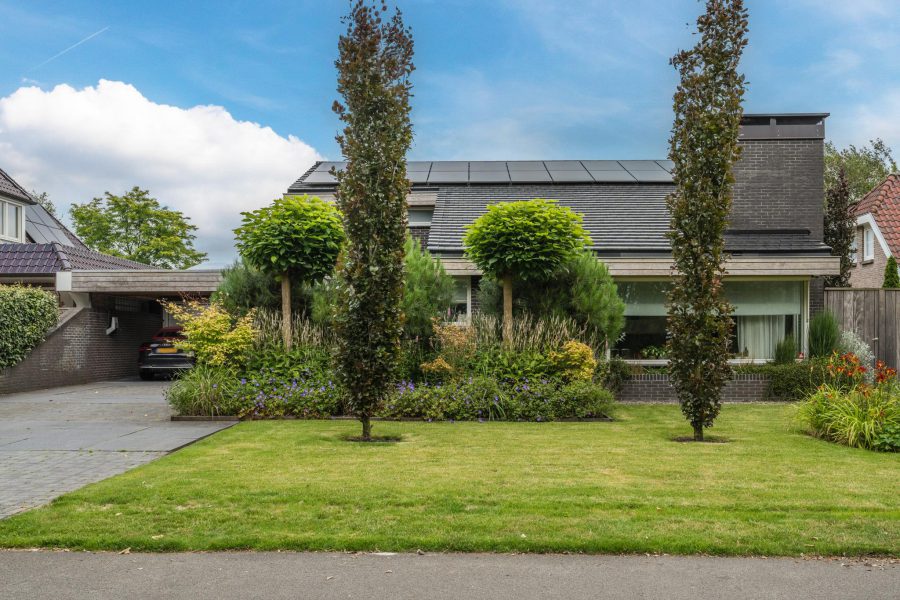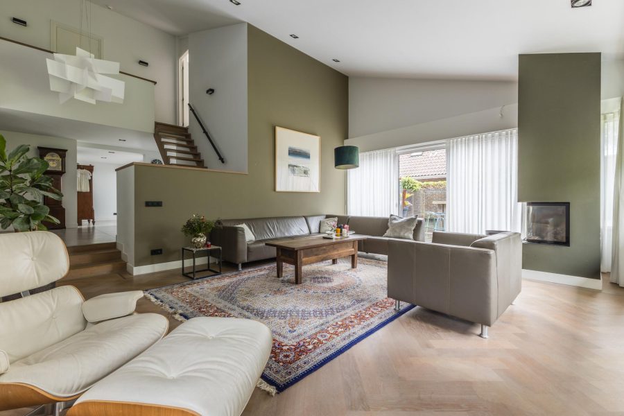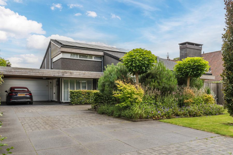 Looking for a spacious, DETACHED VILLA with playful architecture? Then this property, located on a generous plot of 1131 m², is certainly worth considering. The bright, charming house with a deep garden offers a peaceful oasis of comfort. You’ll find a creatively designed living room with two fireplaces and a mezzanine, a bedroom with an ensuite bathroom and dressing room on the ground floor, and four spacious bedrooms with a bathroom on the first floor. This home is future-proof, with plenty of possibilities—a fantastic family house where everyone has space, centrally located in a green environment.