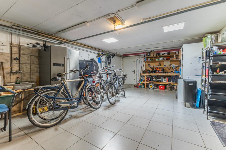 Daarnaast heeft het huis een onder architectuur aangelegde tuin rondom de woning, voorzien van een robotmaaier en automatische sproei-installatie, met verschillende terrassen en een ruime berging/tuinhuis. Dit biedt de ideale plek voor werk, hobby’s of het ontvangen van gasten. Auto’s kunnen op eigen terrein onder de carport of in de inpandige garage worden geparkeerd.