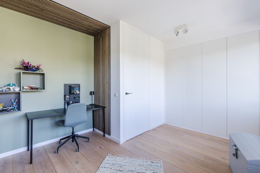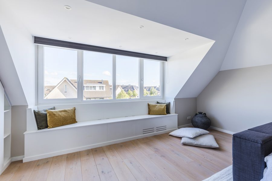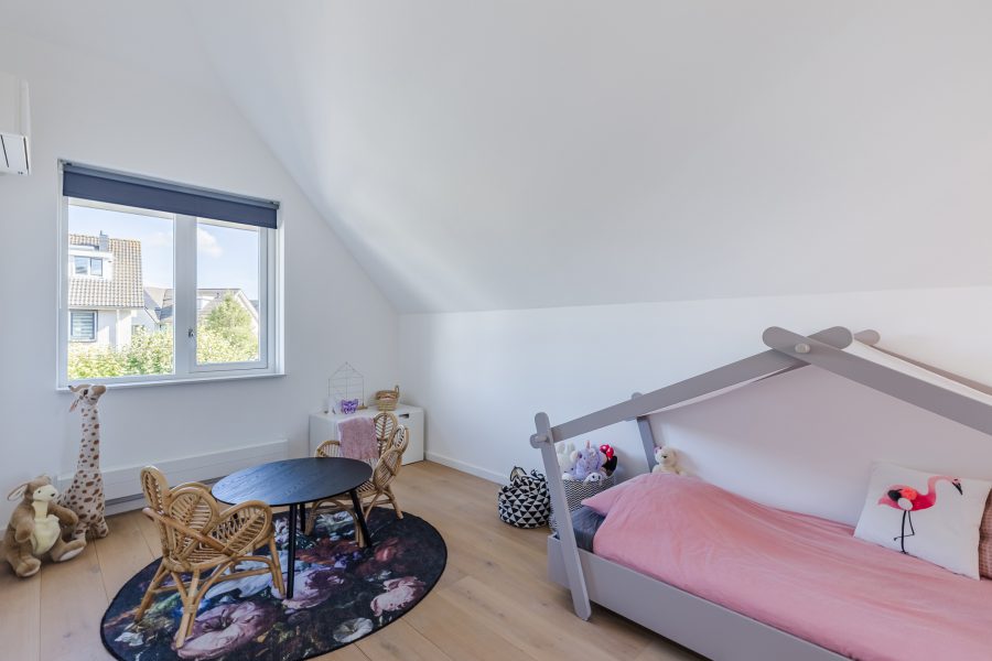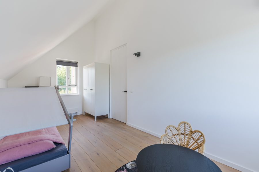 You will find the third and fourth bedrooms on the second floor of the house. Both rooms are spacious and feature nice flooring and sleekly finished walls and ceilings. A dormer window was installed at the back in 2017, providing space and plenty of daylight. In addition, the room at the back is equipped with air conditioning. Both bedrooms have spacious built-in wardrobes.
