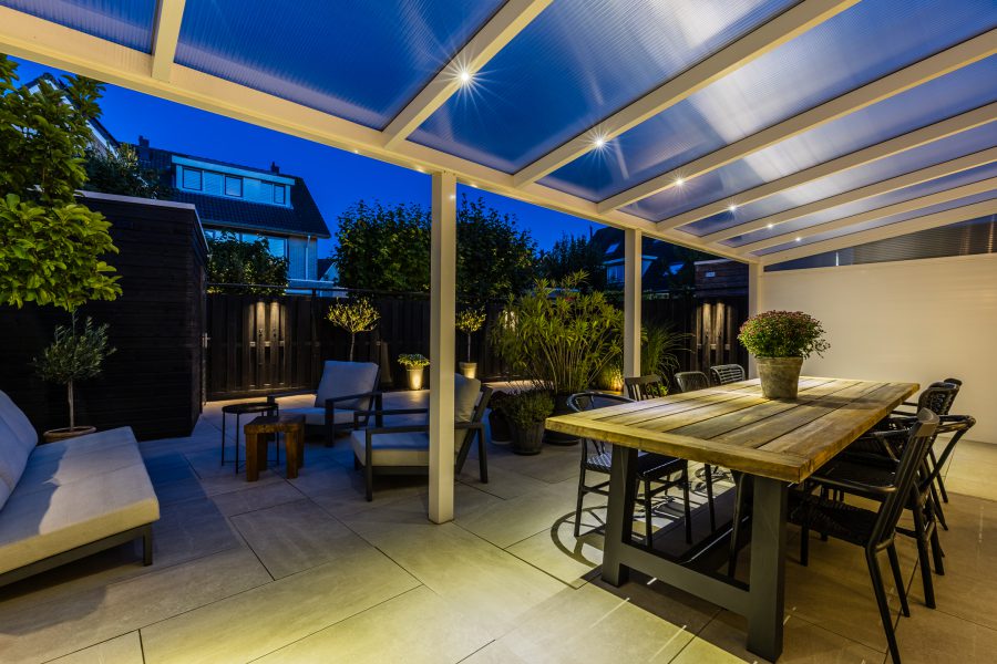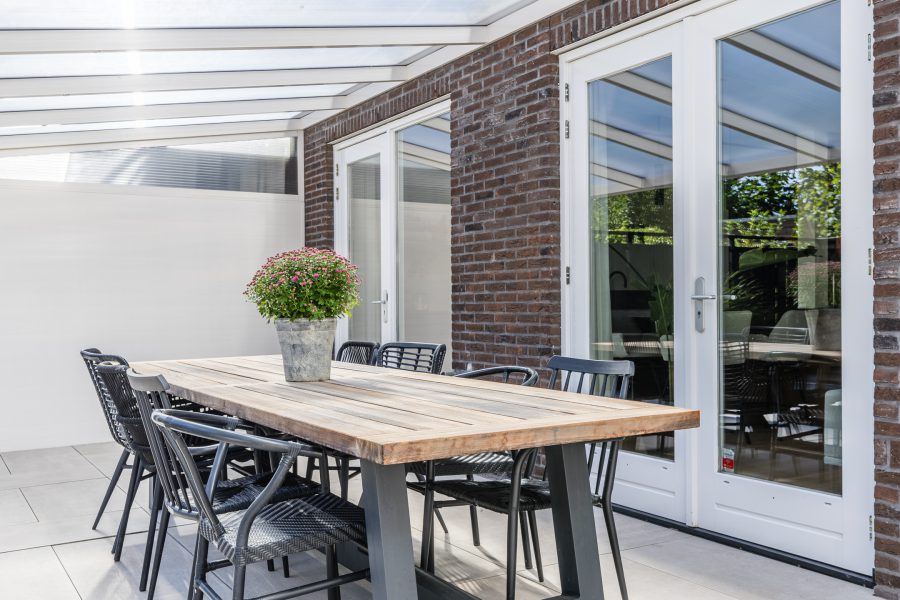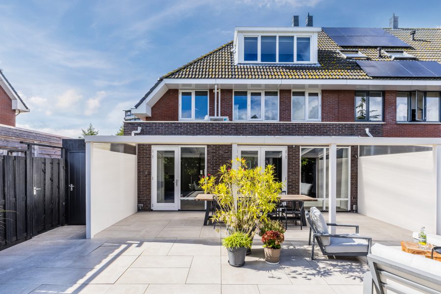 Het huis beschikt over een fraai aangelegde achtertuin op het zuidoosten, die in 2019 volledig is gerenoveerd. De tuin is strak aangelegd met stijlvolle tegels. Aan het huis grenst een prachtige overkapping, waar je heerlijk overdekt kunt relaxen. Ook in de rest van de tuin is er genoeg ruimte om een comfortabele loungeplek in te richten.
