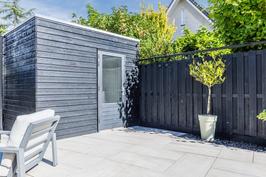 Vanuit de tuin heb je toegang tot twee bergingen, die volop ruimte bieden voor tuinspullen en fietsen.
