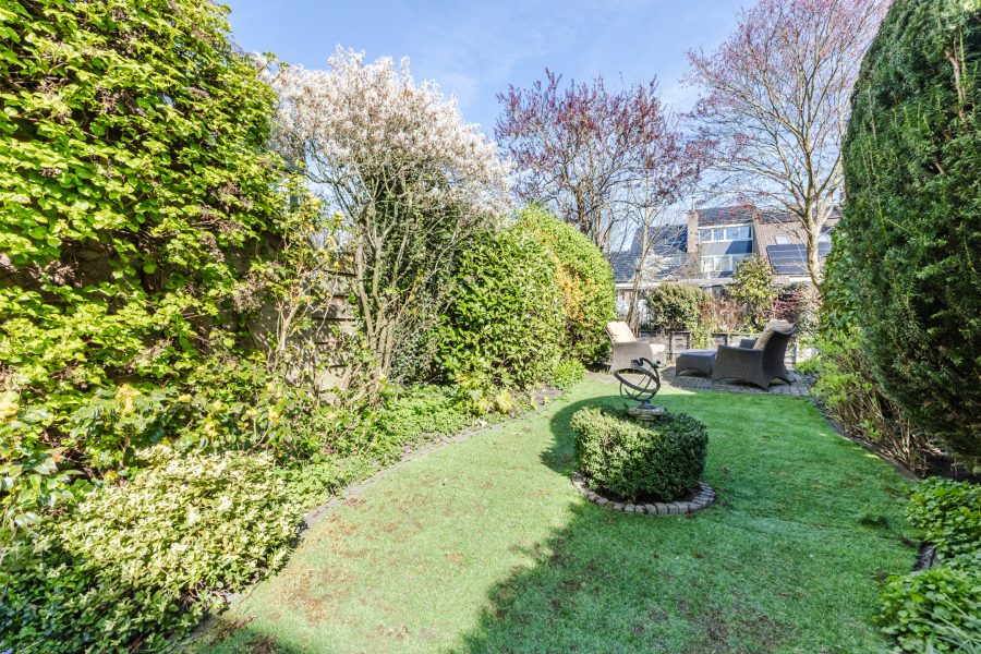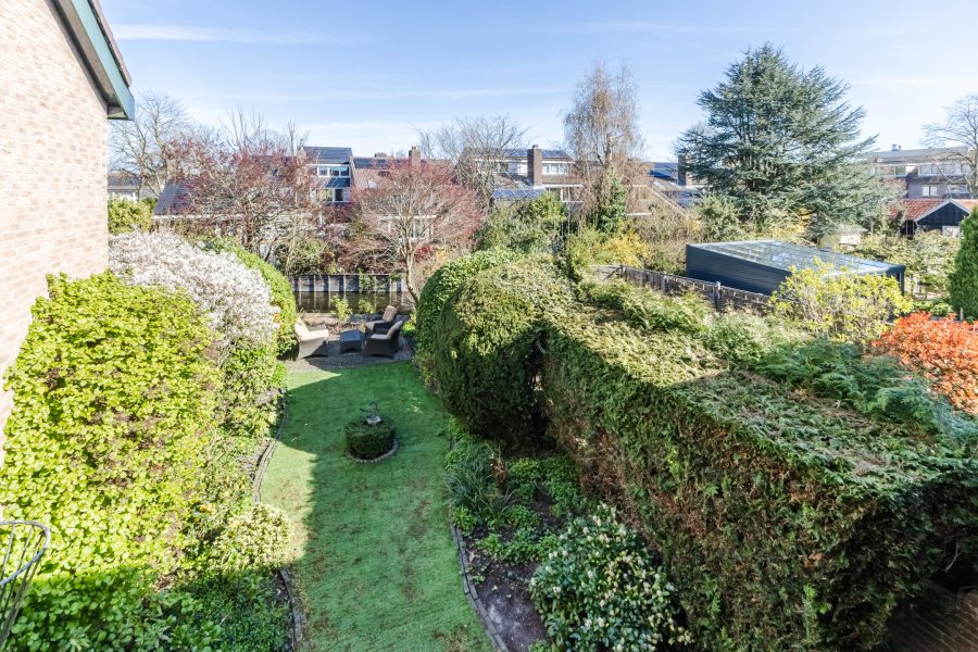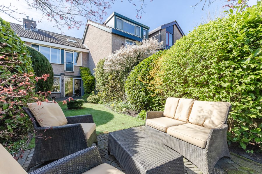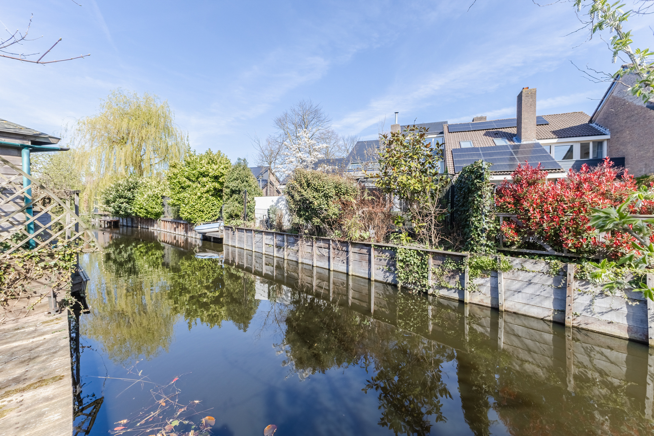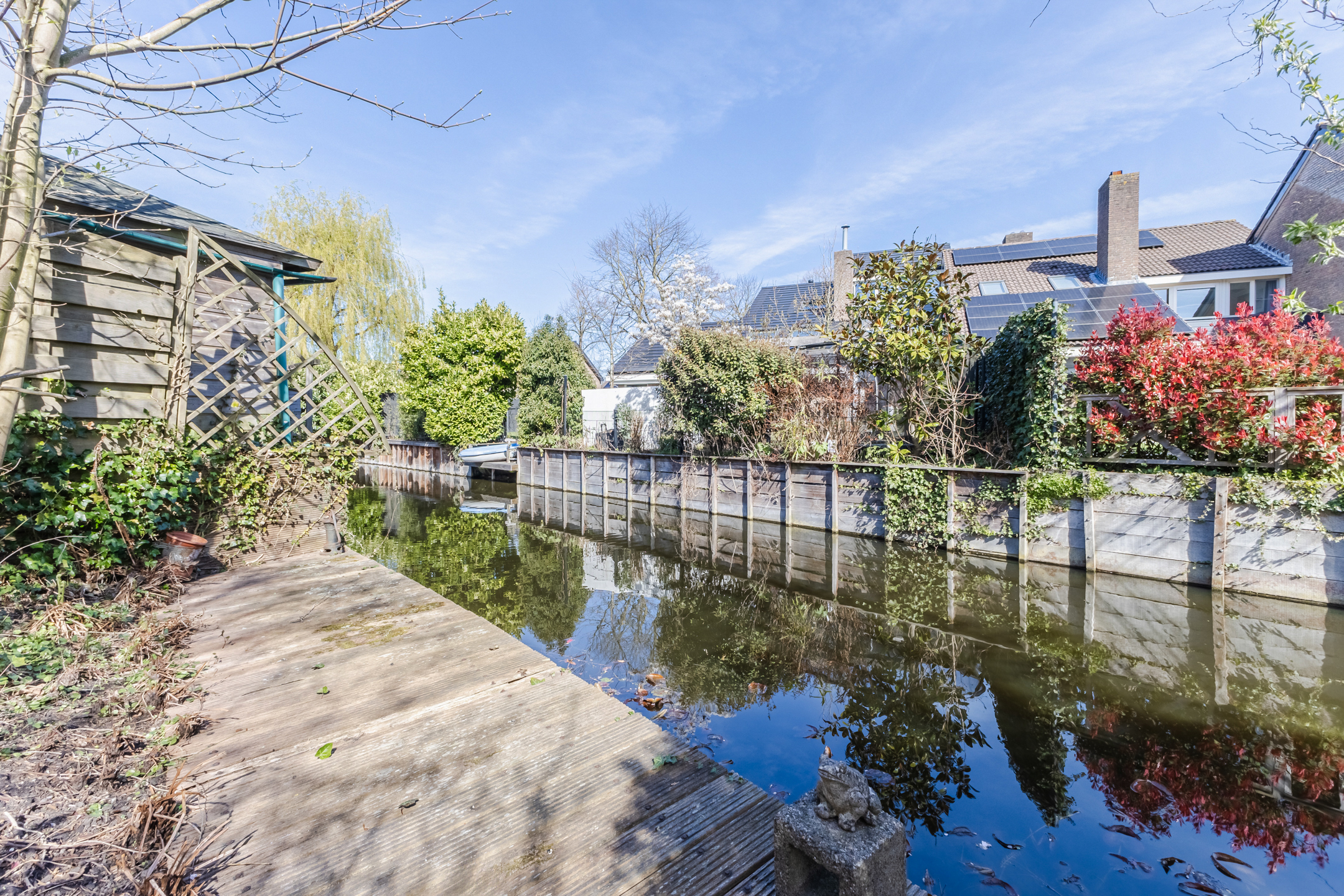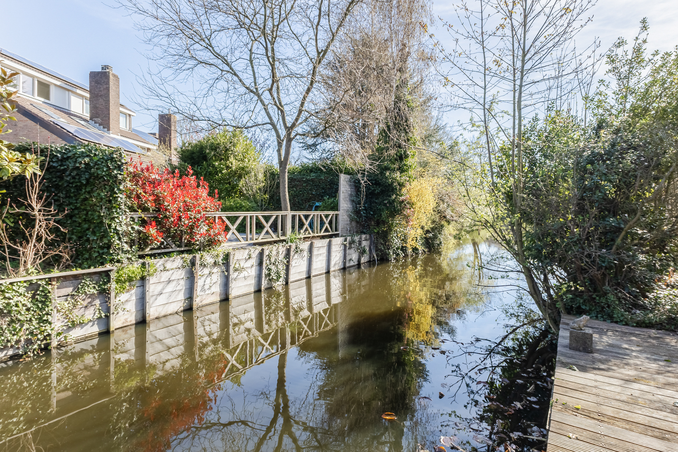 De achtertuin heeft vrijwel de gehele dag zon en is prachtig aangelegd. De steiger aan het water biedt je een extra luxe loungeplek.