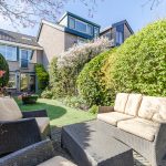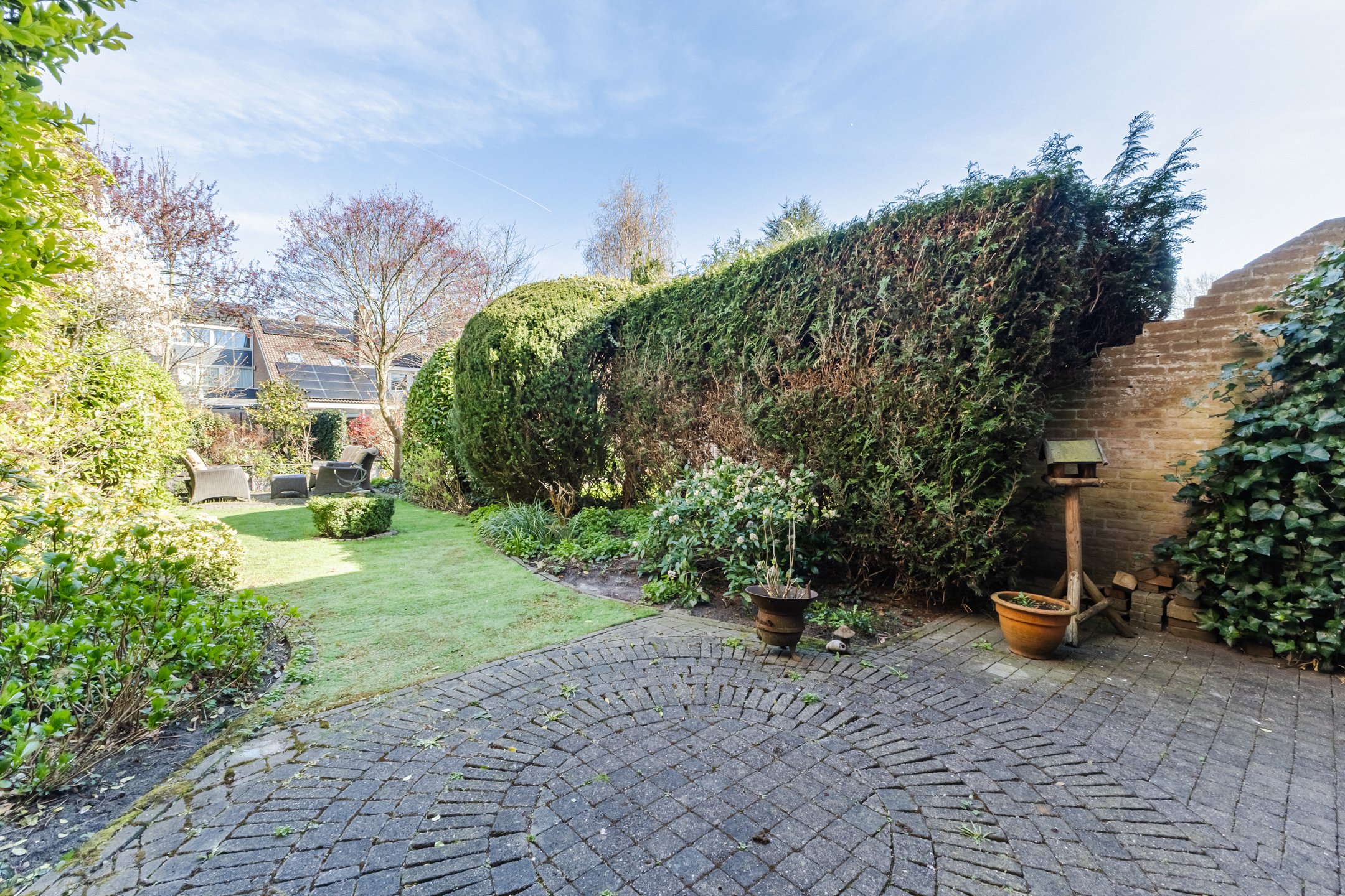 The ground floor features a spacious entrance hall, a toilet, and a beautifully large, garden-facing living room with an open kitchen that was modernized in 2020. The first floor offers a landing, three generously sized bedrooms, and two bathrooms—one with a bathtub, washbasin, and second toilet, and the other with a shower and washbasin. The second floor, accessible via a fixed staircase, includes a landing, a laundry area, and an open space where you can create a fourth, or even a fourth and fifth bedroom.