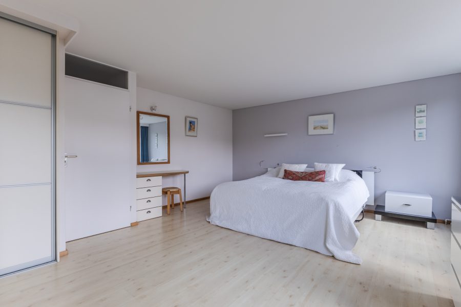 Thanks to the dormer at the front, the third bedroom is wonderfully spacious. A large front window and two roof windows at the rear provide ample natural light. The bedroom is neatly finished and features a sliding wardrobe.