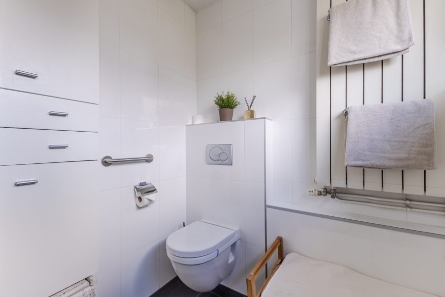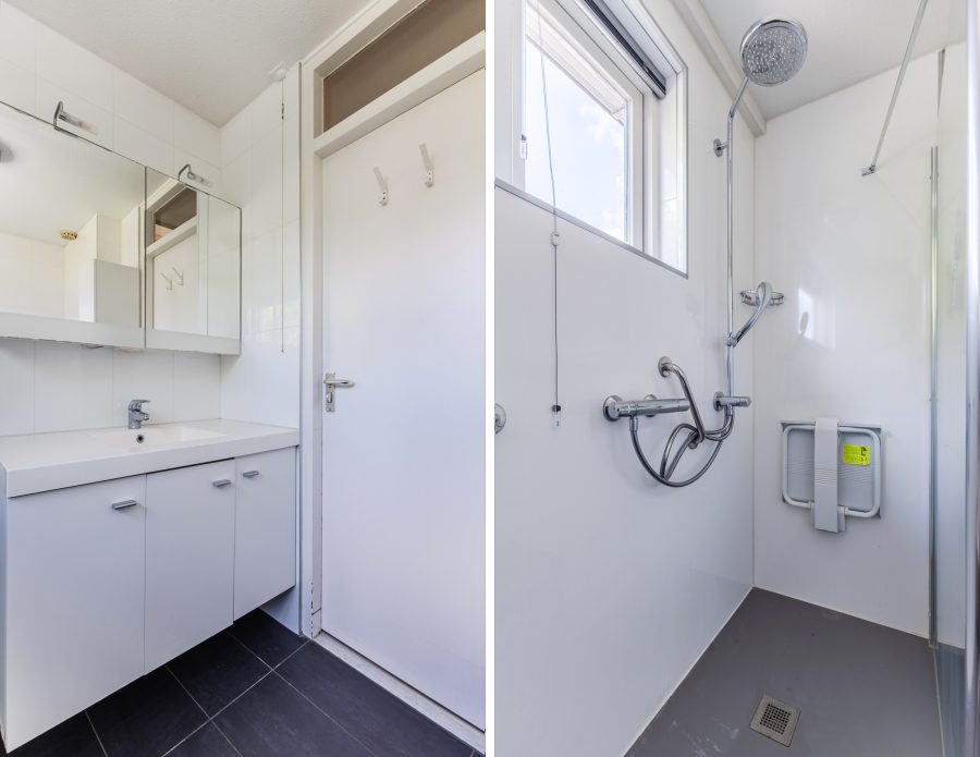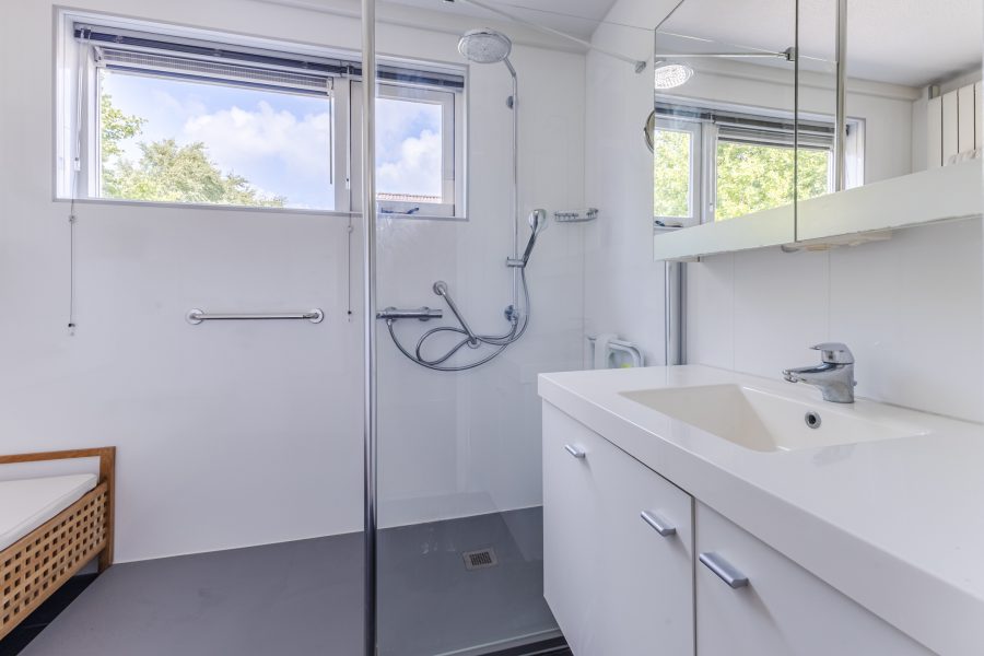 • Ruime badkamer met toilet, wastafel en inloopdouche