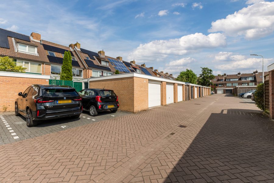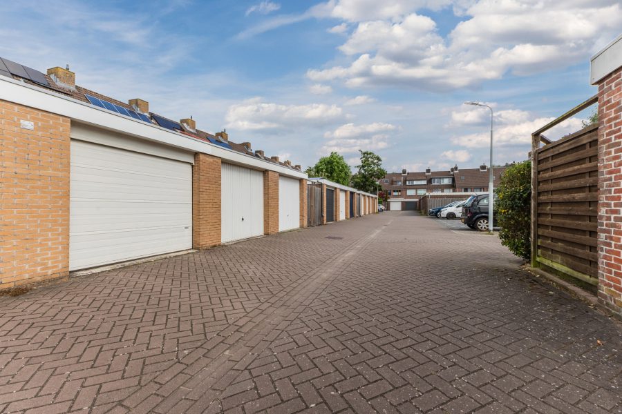 Achterin de tuin staat een grote stenen garage. Deze biedt naast parkeergelegenheid ook ruimte om fietsen te stallen en spullen op te bergen. De garage is uitgerust met een laadpaal voor een elektrische auto.