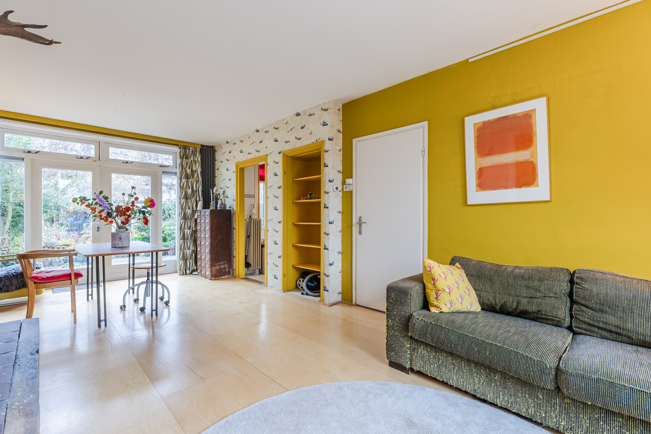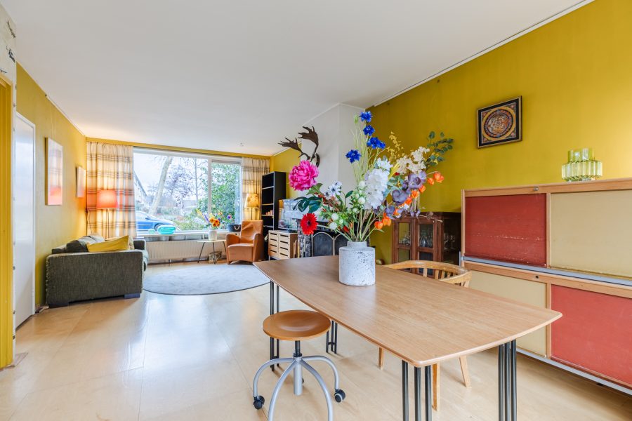 This lovely, terraced house (1970) is located in a quiet and child-friendly neighborhood with mainly local traffic. The cozy center of Krommenie is just around the corner. There you will find various specialty shops and nice restaurants. The Rosariumplein, with all kinds of shops for your daily shopping, is also within walking distance.