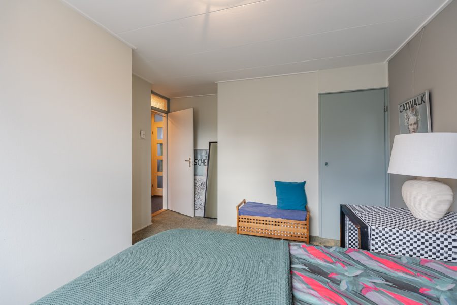 Op deze verdieping vind je de eerste drie slaapkamers en de badkamer. Van de drie slaapkamers ligt er één aan de voorzijde en twee aan de achterzijde. Beide kamers beschikken over een tapijtvloer en keurig afgewerkte wanden.