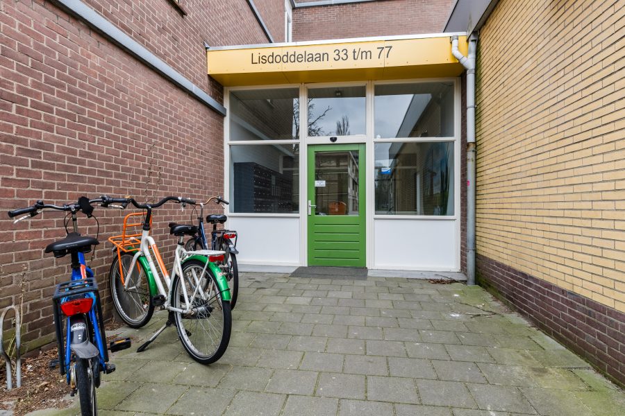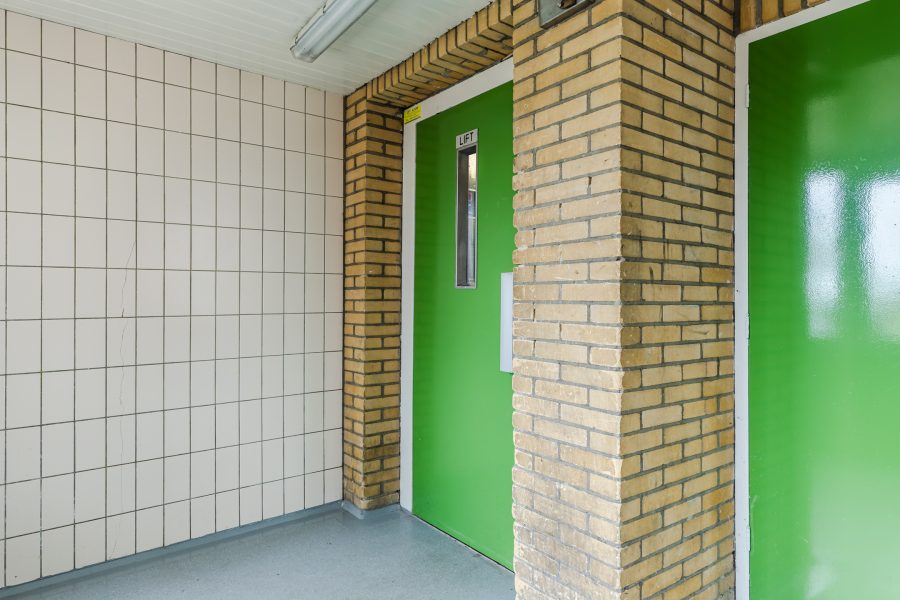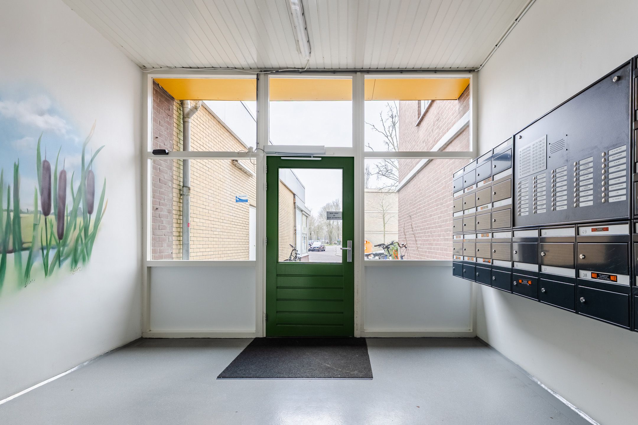 Gesloten entree. Er is een gemeenschappelijke hal met brievenbussen, trappenhuis en lift.