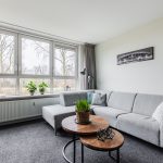 De woonkamer is aan de achterzijde gelegen en ruim opgezet. Deze ruimte is deels afgewerkt met tapijt en deels met laminaat. Dankzij de grote raampartij valt er veel natuurlijk licht binnen. Het appartement beschikt over drie slaapkamers, waarvan twee aan de voorzijde en één aan de achterzijde. Alle slaapkamers zijn ruim van formaat, netjes afgewerkt en lekker licht.